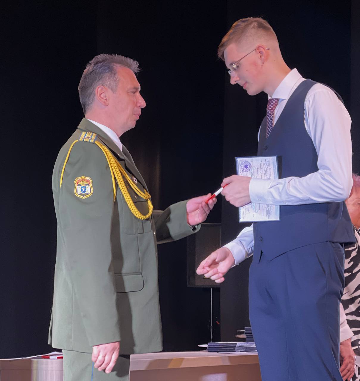 138 выпускникам лечебного, стоматологического и фармацевтического факультетов, прошедшим полный курс военной подготовки по программе офицеров запаса на военной кафедре, в соответствии с приказом Министра обороны Республики Беларусь, присвоено первое воинское звание офицерского состава «лейтенант медицинской службы запаса». Погоны вручал начальник военной кафедры полковник медицинской службы Лятос Игорь Александрович.
