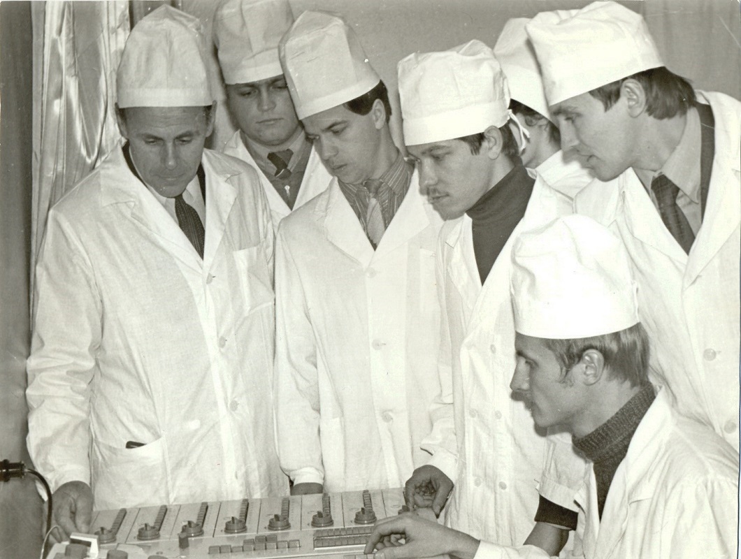 В первом ряду слева направо: доцент З.В. Свирская, ассистент И.В. Лукомский, доцент Г.И. Сосновик, ассистент Ю.В. Алексеенко.