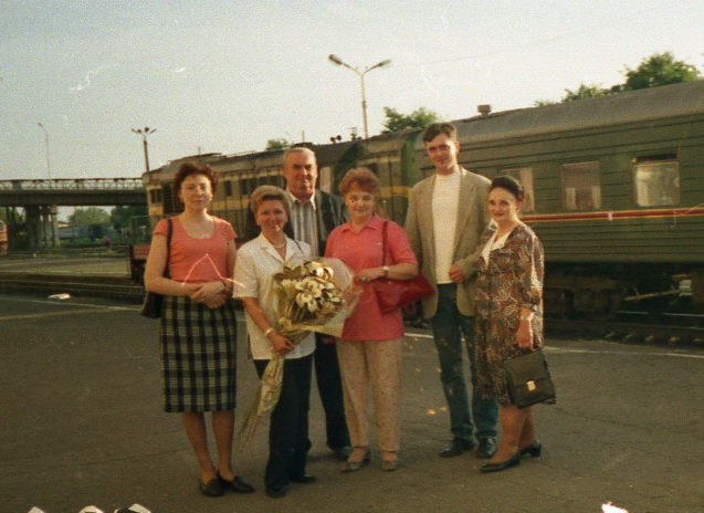 Участники I-й Российско-Белорусской конференции "Медицинские и социально-психологические проблемы алкогольной и наркотической зависимости" июнь 2002г. слева направо доцент Шевцова, академик Дмитриева Т.Б., профессор Кирпиченко А.А., профессор Клименко Т.В., доцент Кирпиченко Ан.А., профессор Скугаревская Е.И.