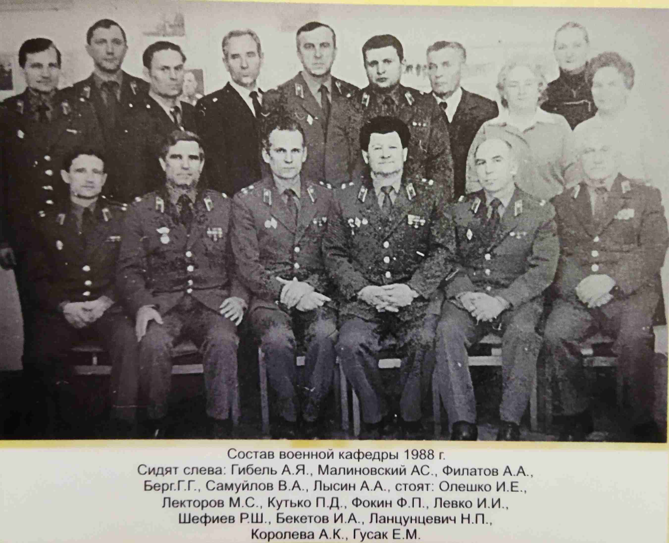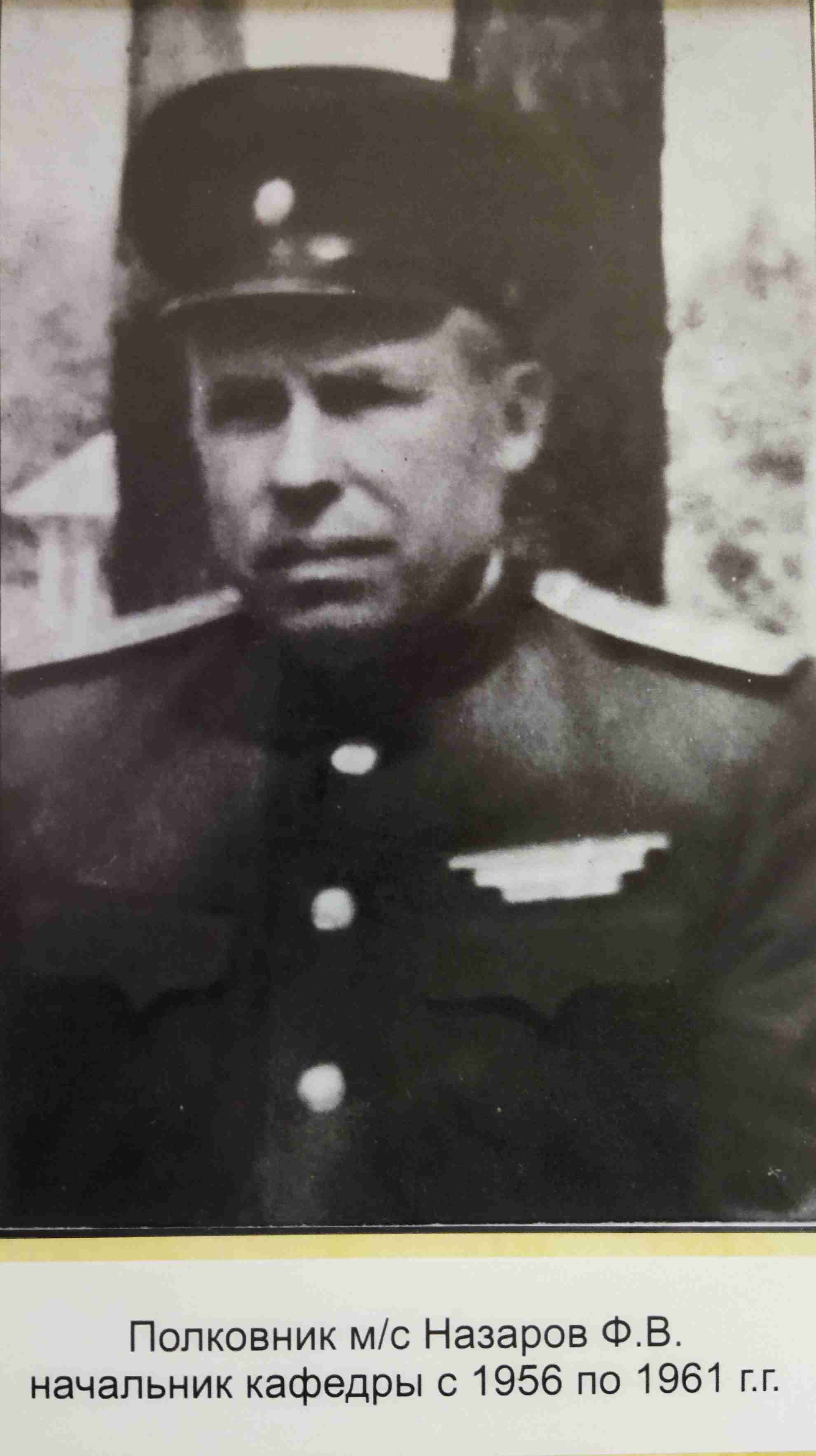 Значительный вклад в развитие военной кафедры в период с августа 1956 по 1961 г., внес начальник военной кафедры полковник медицинской службы Назаров Федор Васильевич, участник финской кампании и Великой Отечественной войны, награжденный 9 правительственными наградами.