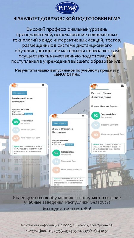 Накопленный многолетний опыт и традиции позволяют сотрудникам кафедры биологии ФДП оптимизировать процесс обучения слушателей и организовать новые формы работы с применением прогрессивных учебных и научных технологий, учесть возможности всех категорий будущих абитуриентов и обеспечить их качественную предметную подготовку к вступительным испытаниям по биологии.