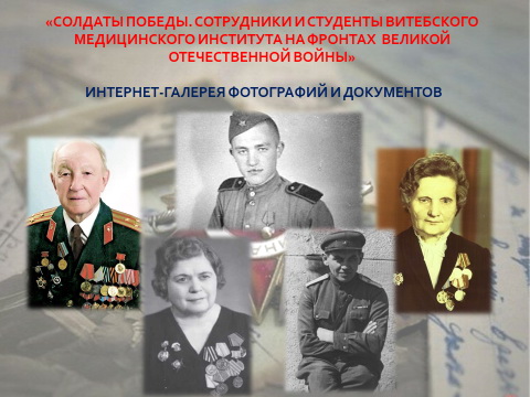 - поиск и систематизация материалов об истории ВГМУ в годы войны (интернет-галерея «Солдаты Победы. Сотрудники и студенты Витебского медицинского института на фронтах Великой Отечественной войны»
