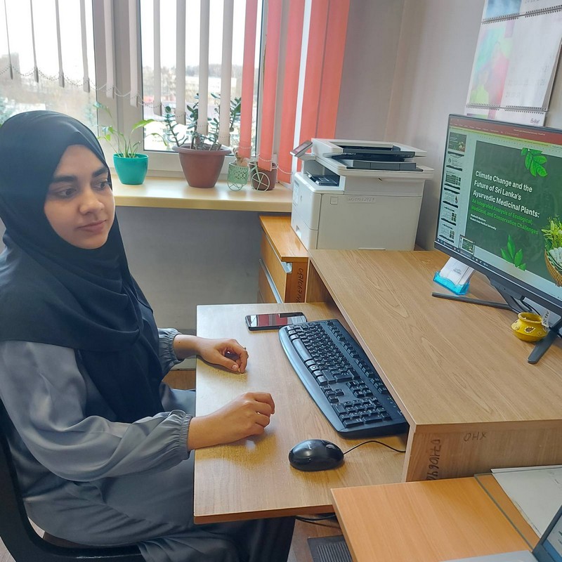 Студентка первого курса факультета подготовки иностранных граждан (специальность «General medicine») Mackeen Masheefa, выступила с докладом «Сlimate change and the future of Sri Lanka's ayurvedic medicinal plants: ecological and conservation challenges» на пленарном заседании конференции (научный руководитель: З.С. Кунцевич).