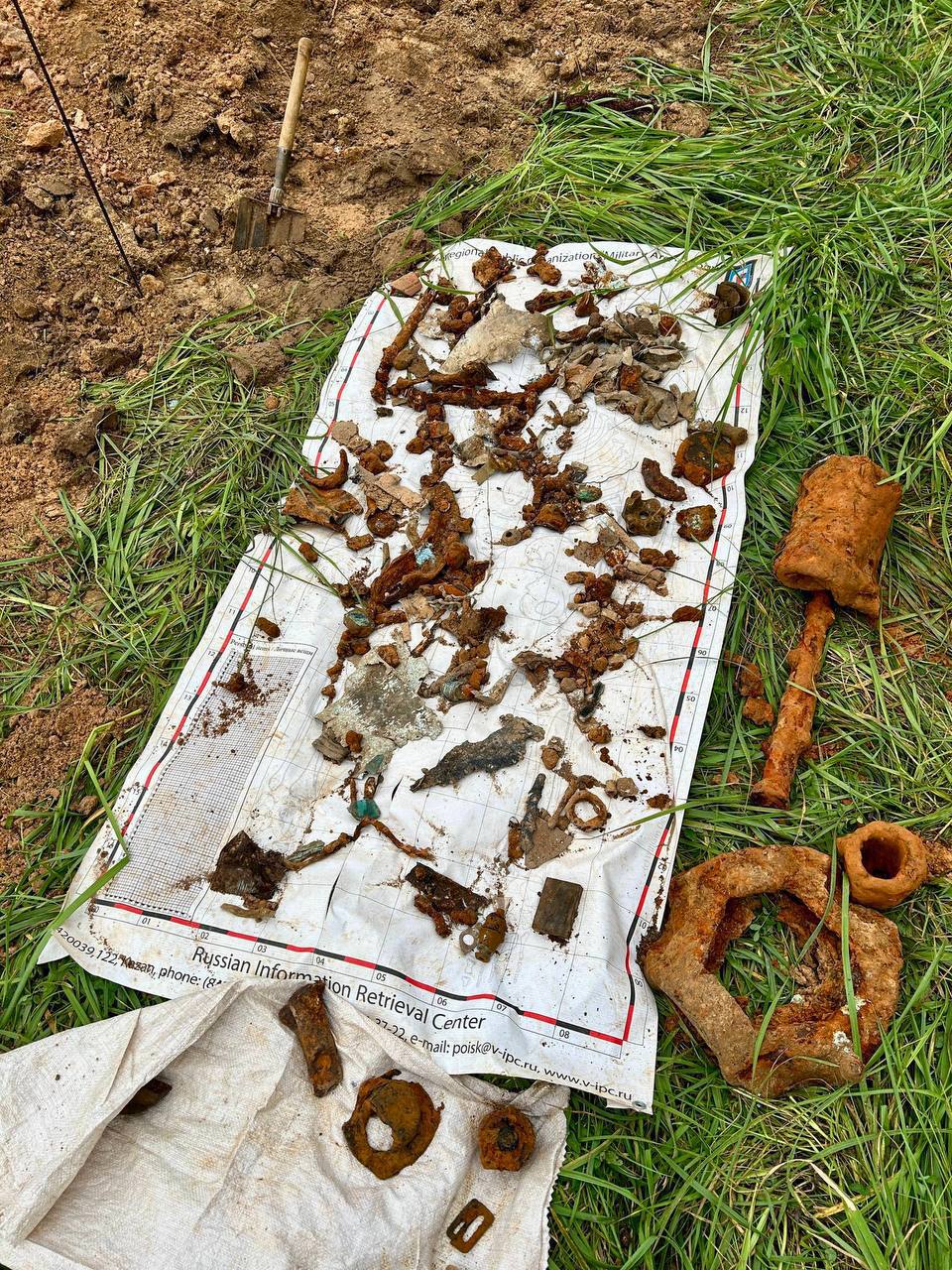 В ходе проведенных раскопок были найдены фрагментированные человеческие останки, парашютные пряжки, номерные части двигателя, что поможет установить имена погибших членов экипажа.