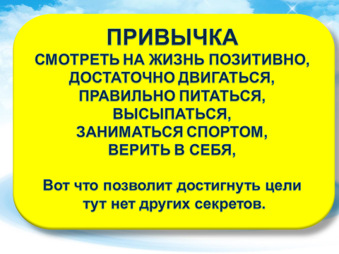 lekciiУважаемые первокурсники! Завершились встречи в формате лекций «Основы успешной адаптации к обучению в ВГМУ». Теперь вы все знаете особый секрет, магическую формулу: Привычка смотреть на жизнь позитивно, достаточно двигаться, правильно питаться, высыпаться, заниматься спортом, верить в себя – вот что позволит достигнуть цели.
