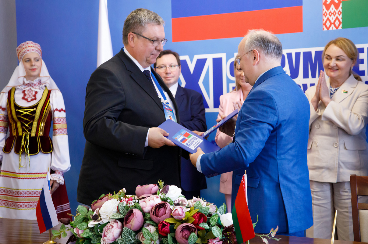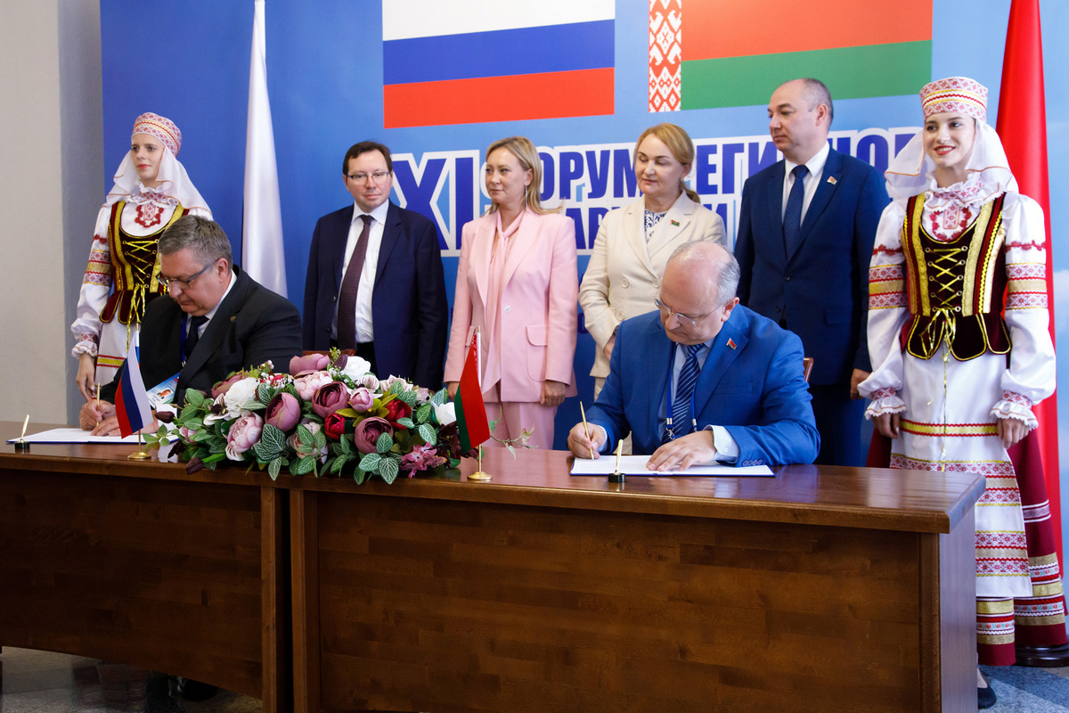 Форум регионов России и Беларуси с 2014 года служит традиционной диалоговой площадкой представителей органов власти и экономики России и Беларуси. В рамках форума в этом году на площадке ВГМУ прошли подписания следующих соглашений о сотрудничестве между: