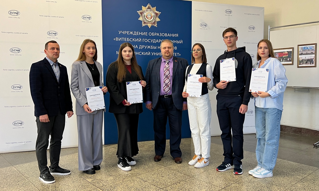 В ходе мероприятия проректор по идеологической и воспитательной работе Дмитрий Константинович Кужель вручил Благодарности студентам-участникам инновационного образовательного проекта «Молодёжь ВГМУ за семейные ценности!».