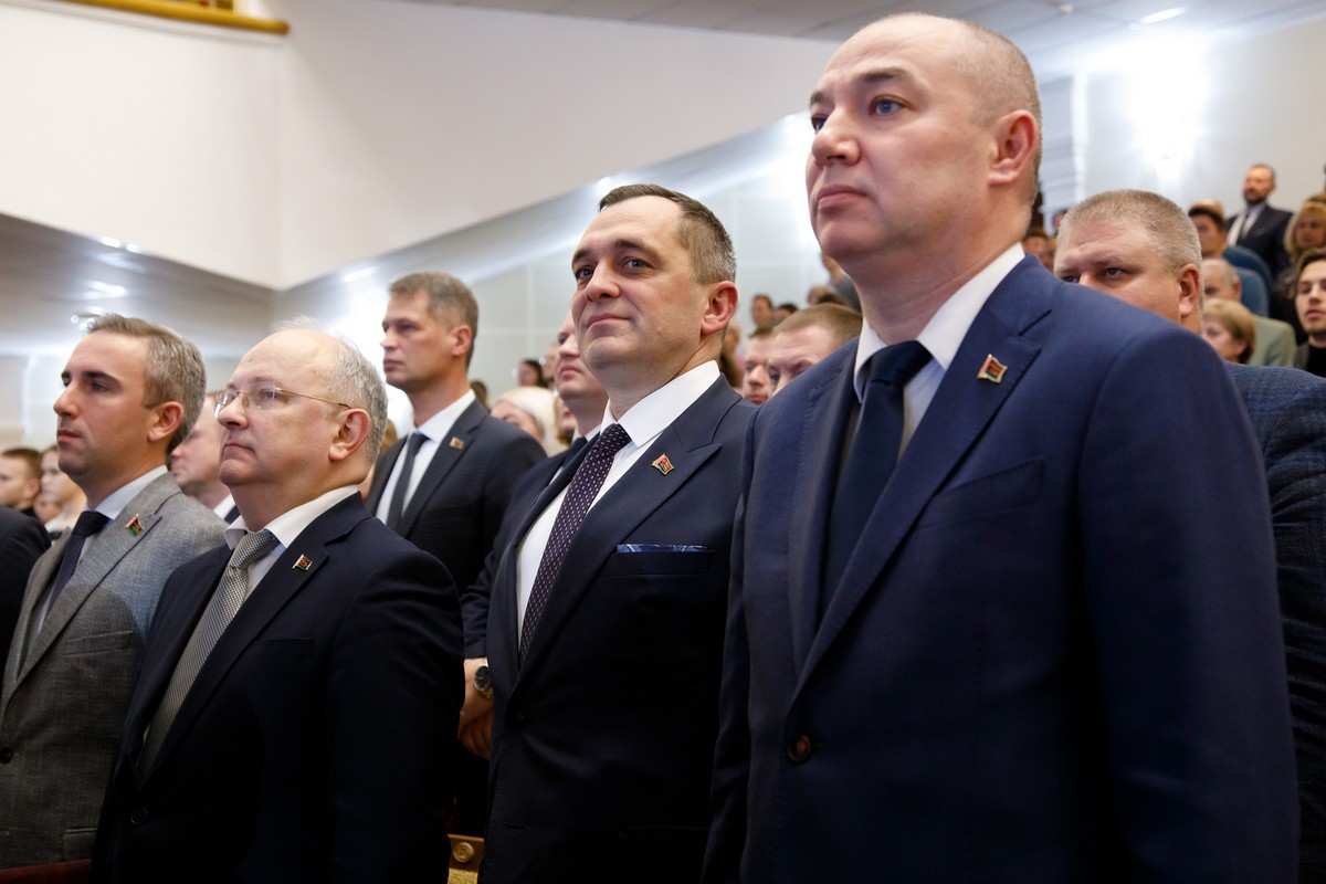 С юбилеем ВГМУ поздравили член Совета Республики Национального собрания Республики Беларусь, генеральный директор центра культуры «Витебск» Глеб Лапицкий и заместитель председателя Постоянной комиссии по здравоохранению, физической культуре, семейной и молодежной политике Палаты представителей Александр Шипуло.