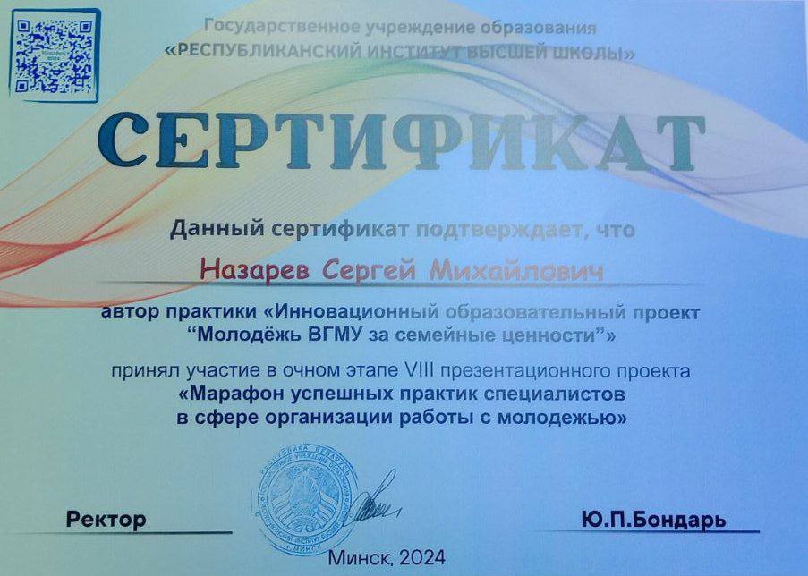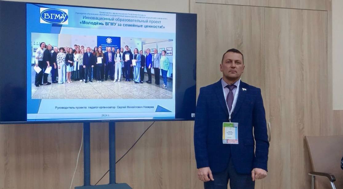 Инновационный образовательный проект «Молодёжь ВГМУ за семейные ценности!» прошёл отбор для презентации в очном финальном этапе Марафона и был представлен куратором проекта педагогом-организатором Сергеем Назаревым на тематической площадке «Семья. Здоровье. Безопасность».