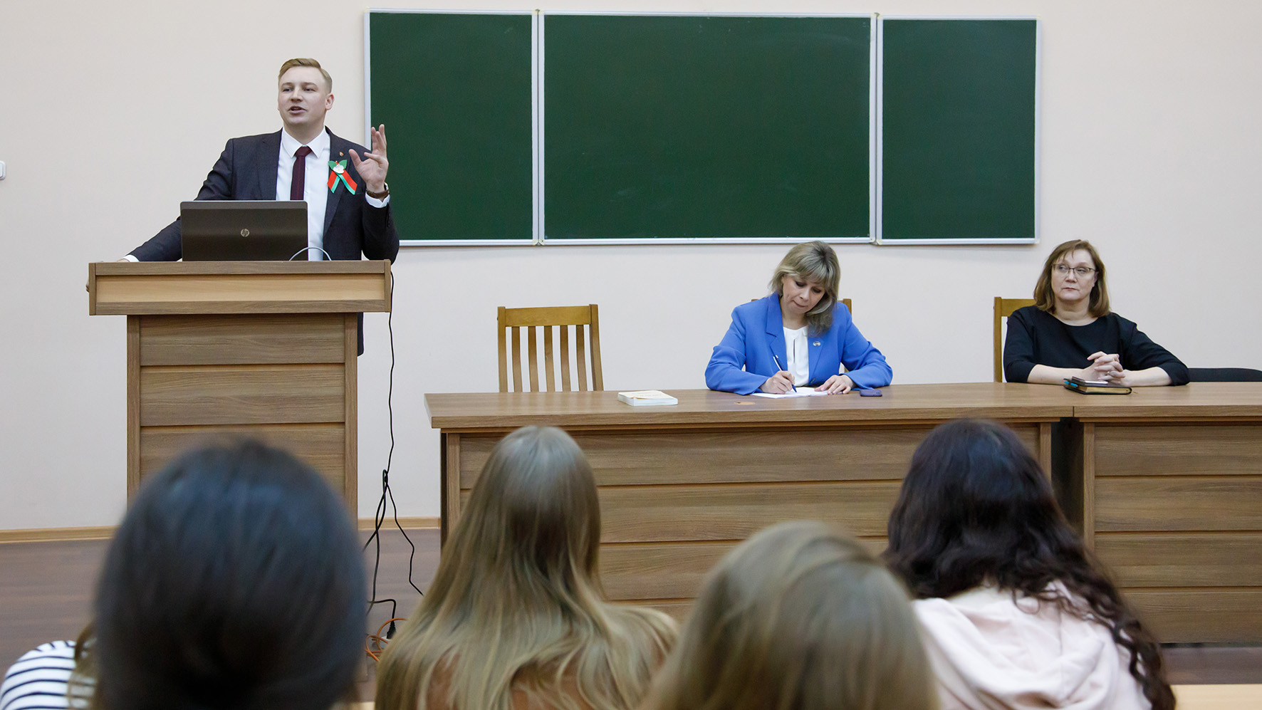 На встрече присутствовали проректор по воспитательной и идеологической работе Н.Г.Болтрушевич и заместитель декана лечебного факультета С.П. Козловская.