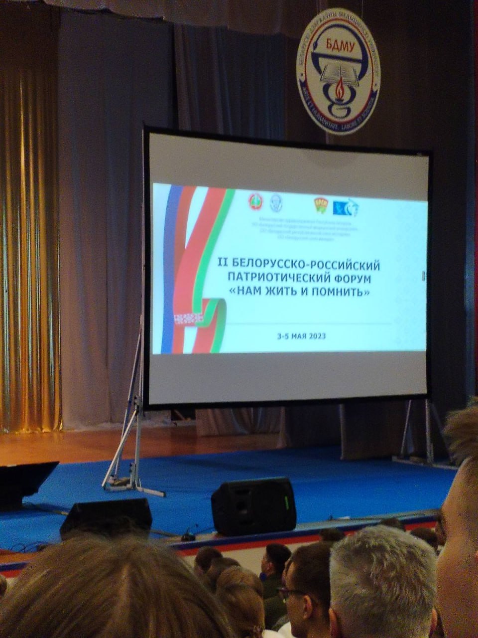 3 мая в г.Минске на базе БГМУ начал свою работу II белорусско-российский форум «Нам жить и помнить», в котором приняли участие Мартинкевич И.А., доцент кафедры социально-гуманитарных наук и студенты лечебного факультета Бронская Диана, Кускова Елена, Мисуно Элин и Жук Владислава.