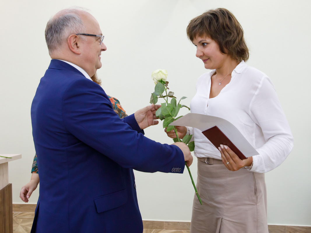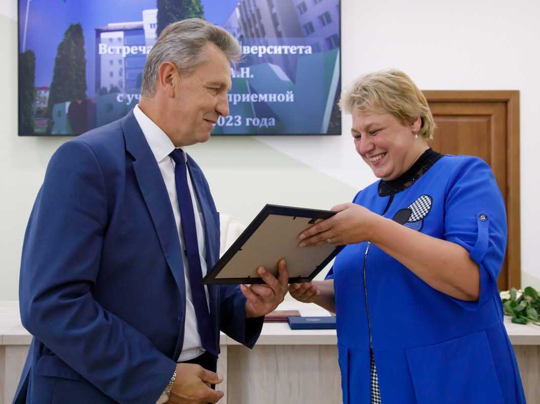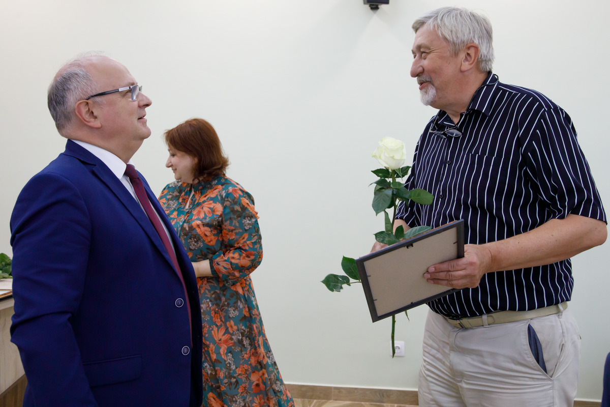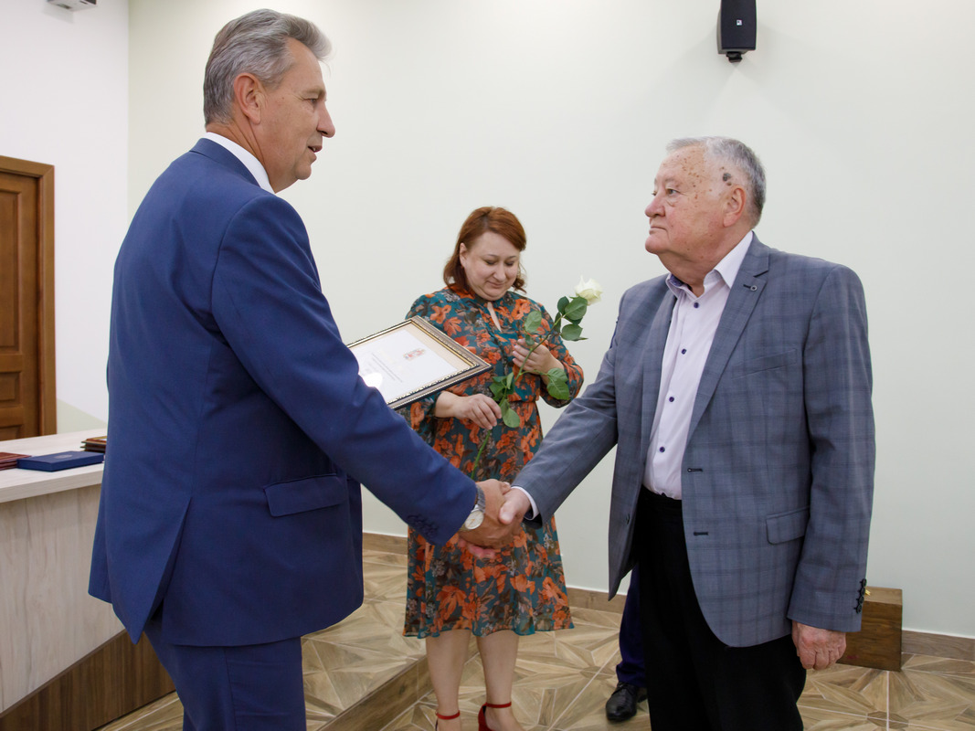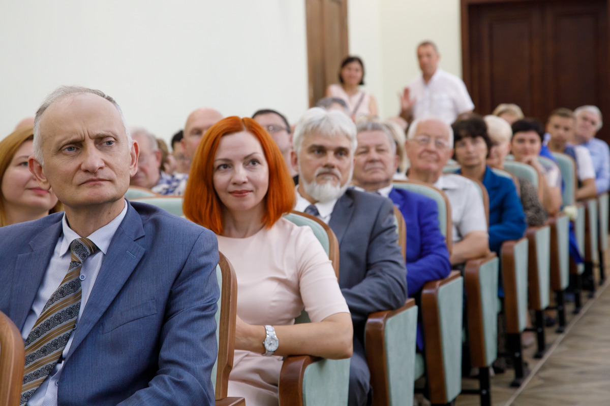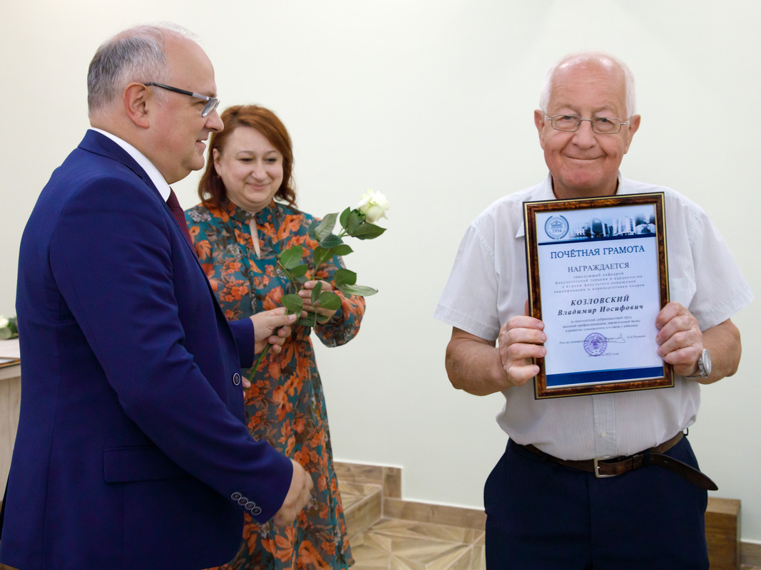 Ректор университета Алексей Чуканов вручил Почетные грамоты ВГМУ заведующему кафедрой госпитальной терапии и кардиологии с курсом ФПК и ПК Владиславу Подпалову, заведующему кафедрой факультетской терапии и кардиологии с курсом ФПК и ПК Владимиру Козловскому, заведующему кафедрой физической культуры Леониду Большакову.  Вручены аттестаты доцента Голюченко Ольге, Масалковой Юлии, Прищепенко Вячеславу. Почетное звание «Ветеран труда ВГМУ» присвоено лаборанту кафедры токсикологической и аналитической химии Татьяне Баталко.