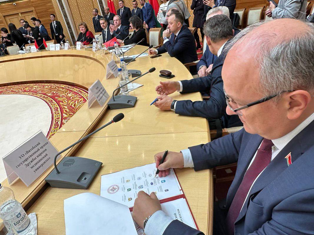 В целях расширения сотрудничества с китайскими учреждениями высшего образования 21-22 ноября в г. Минске проходил Форум ректоров учреждений высшего образования Республики Беларусь и Китайской Народной Республики. В работе Форума принял участие ректор ВГМУ Алексей Чуканов. В рамках Форума было подписано соглашение о создании китайско-белорусской Ассоциации университетов, членом которой стал ВГМУ.