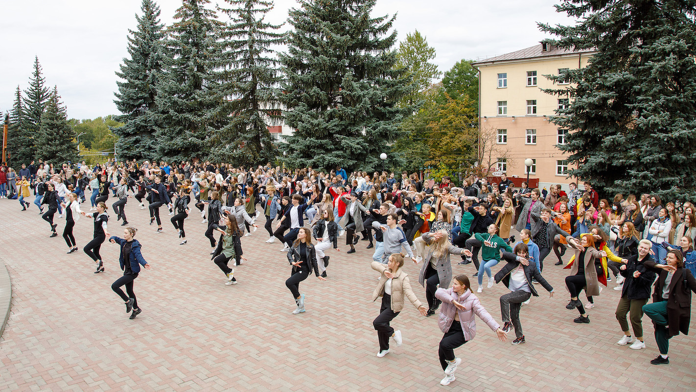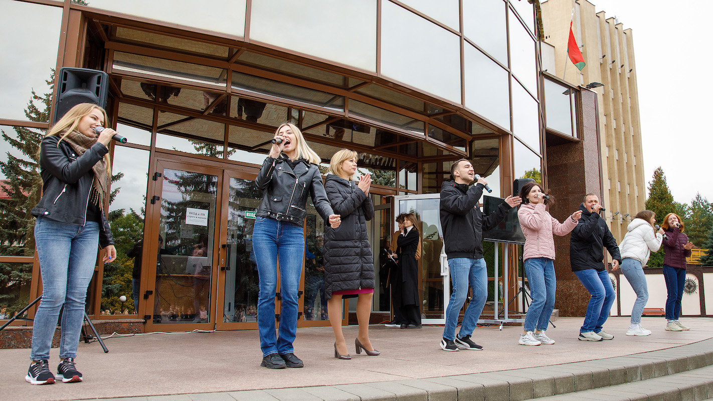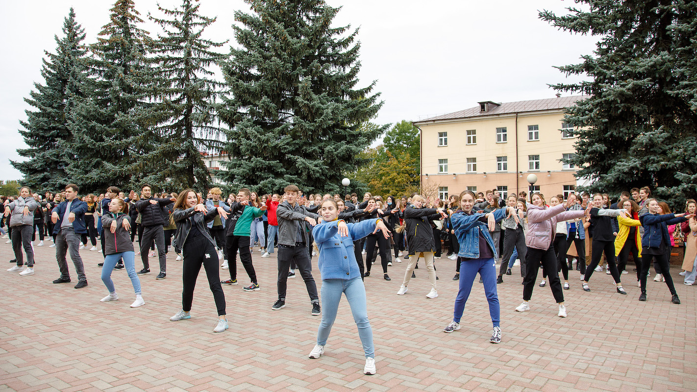 В финале флешмоба солисты вокального коллектива «Тандем» исполнили вместе со всеми давно полюбившуюся нашим студентам песню «Мой самый лучший в мире вуз», а проректор по воспитательной и идеологической работе Наталья Геннадьевна Болтрушевич поздравила всех с праздником и попросила не забывать о том, что только вместе мы сила.