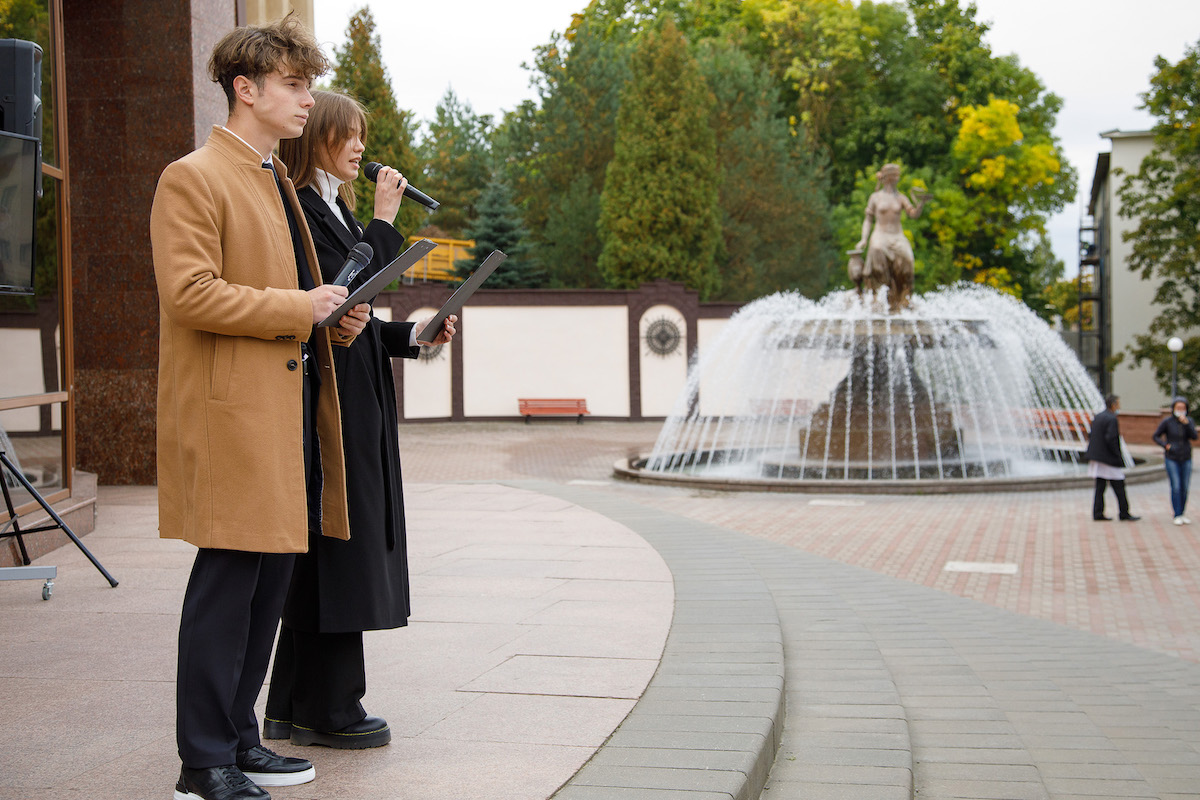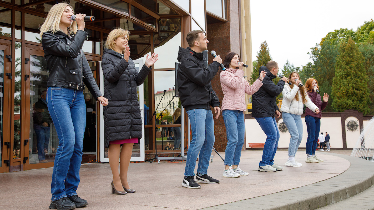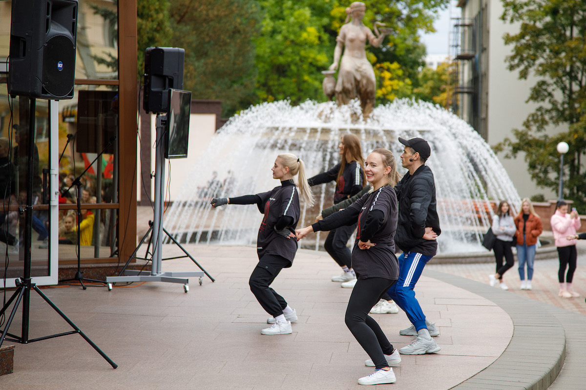 В финале флешмоба солисты вокального коллектива «Тандем» исполнили вместе со всеми давно полюбившуюся нашим студентам песню «Мой самый лучший в мире вуз», а проректор по воспитательной и идеологической работе Наталья Геннадьевна Болтрушевич поздравила всех с праздником и попросила не забывать о том, что только вместе мы сила.