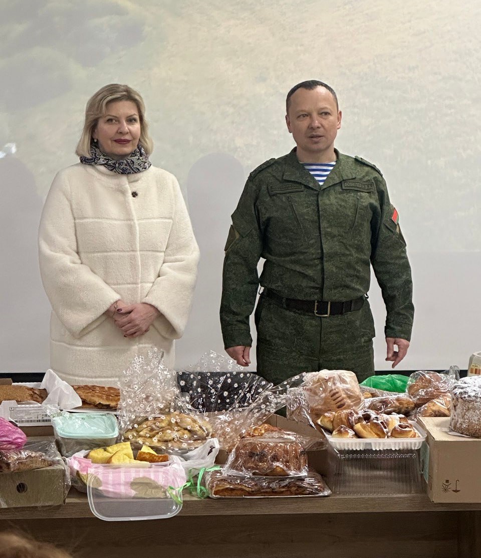 Угощения, домашняя выпечка были переданы в 103-ю Витебскую отдельную гвардейскую воздушно-десантную бригаду в связи с празднованием Дня защитников Отечества и Вооруженных Сил Республики Беларусь.