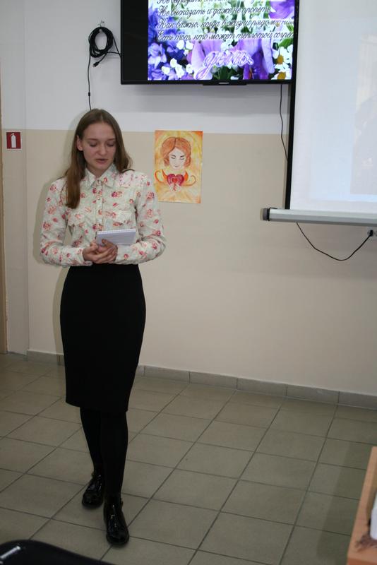 Завершило первую часть мероприятия выступление студентки 4 группы 3 курса лечебного факультета Тарасевич Анастасии Андреевны со стихотворением «У матерей святая должность в мире».
