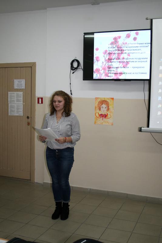 Открыли торжественный вечер, посвящённый Дню Матери, студентки 16 группы 3 курса лечебного факультета Гапонько Наталья Викторовна и Сидорова Яна Сергеевна, которые зачитали отрывок из прозы «Волшебное письмо».