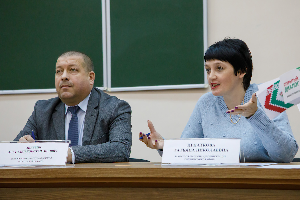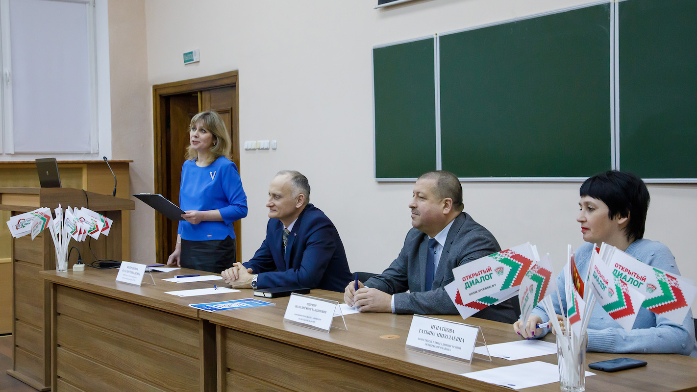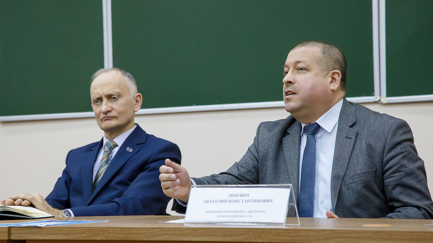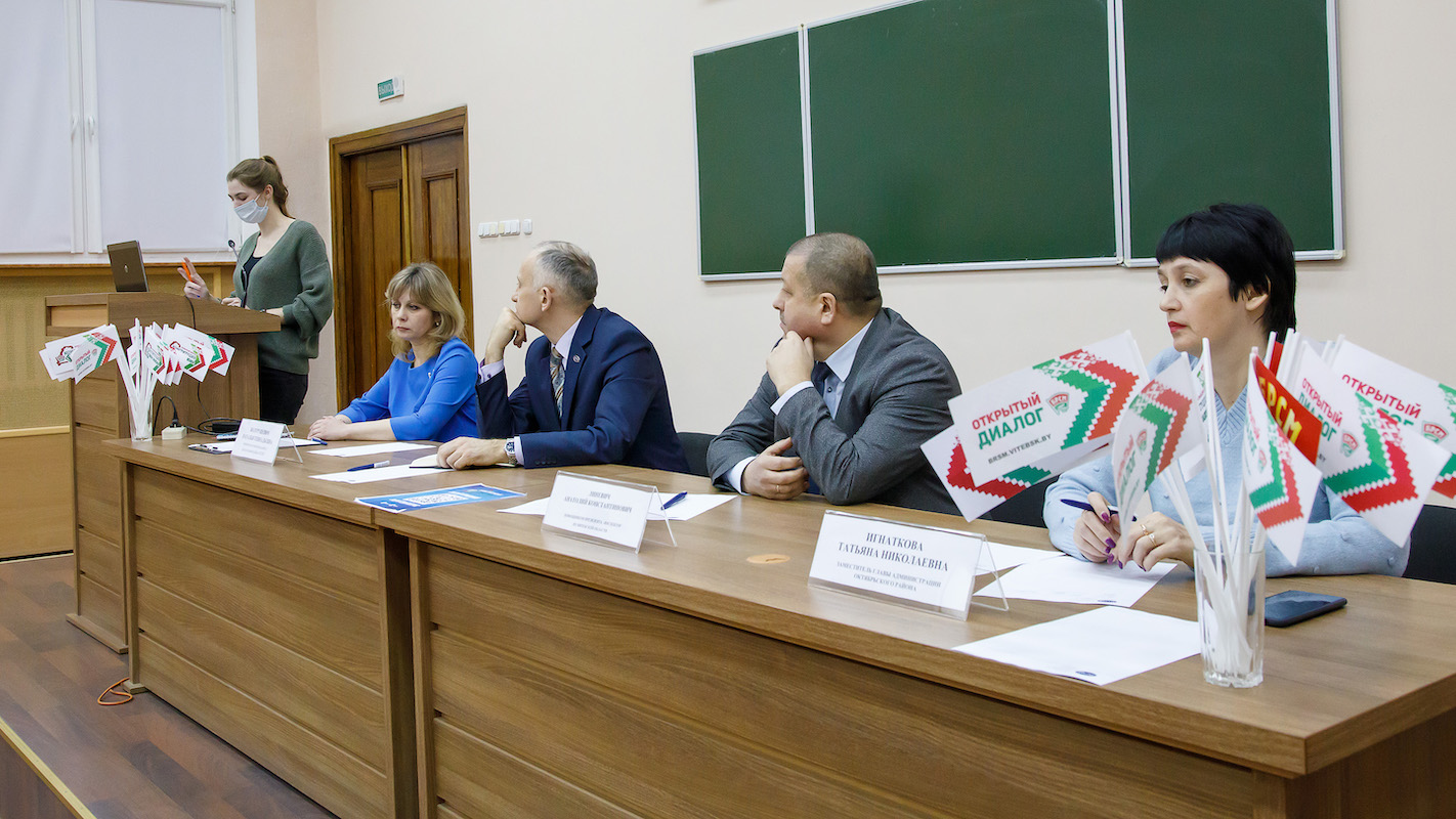 Диалоговая площадка по теме конституционного референдума актива БРСМ ВГМУ и ВГАВМ прошла 22 февраля 2022 года в нашем университете с участием помощника Президента Республики Беларусь Анатолия Константиновича Линевича, инспектора по Витебской области. В дискуссии также приняли участие заместитель главы администрации Октябрьского района Татьяна Николаевна Игнаткова, проректоры ВГМУ Наталья Геннадьевна Болтрушевич и Николай Борисович Дорофеев.