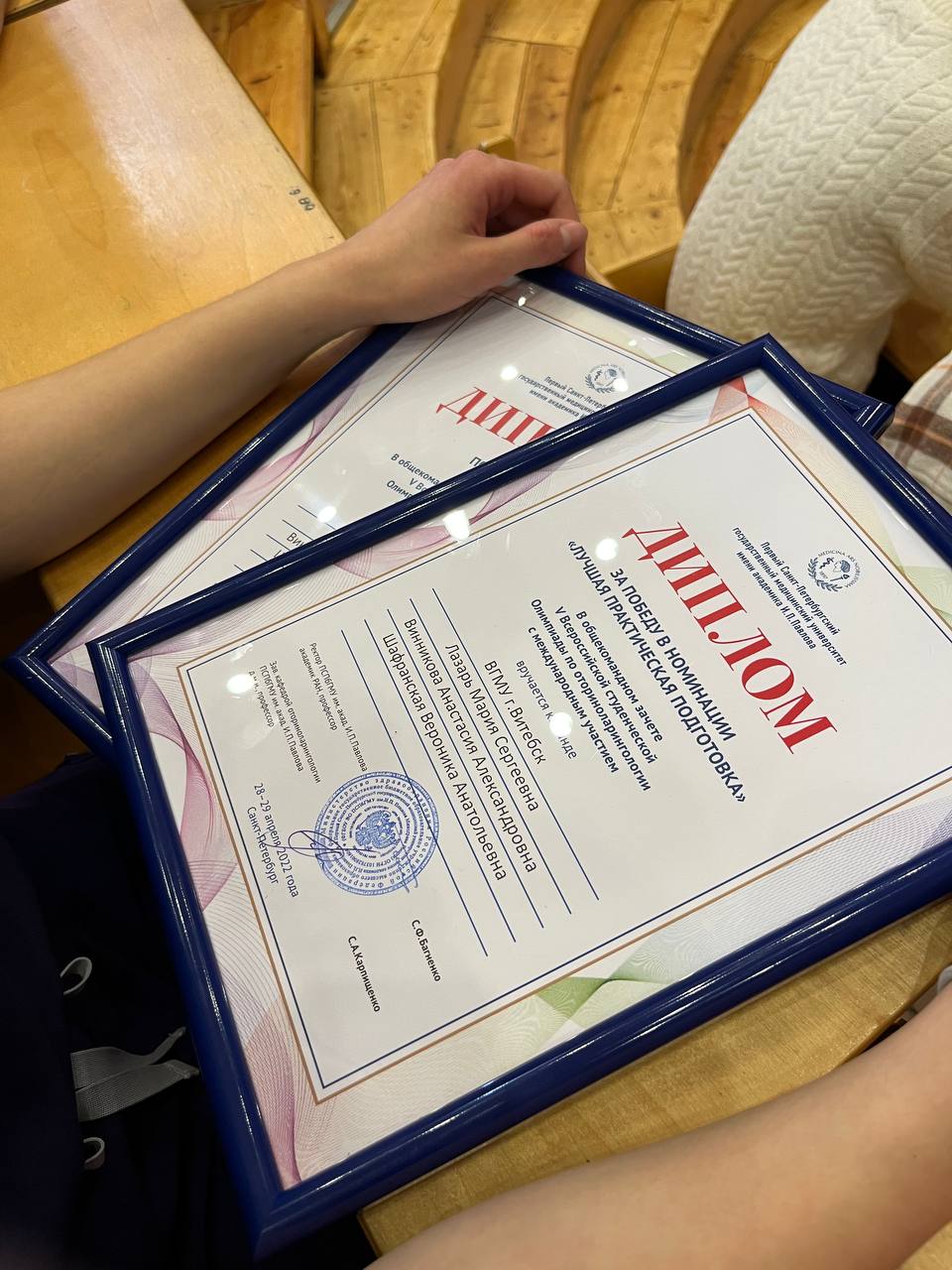 Витебский медицинский университет стал гостем и участником этого значимого события в студенческой научной жизни. Наш вуз представляла команда в составе Марии Лазарь, Анастасии Винниковой и Вероники Шафранской (руководитель - Щелкунов Дмитрий Сергеевич). Хорошая подготовка, умение работать в команде, сосредоточиться на деталях и найти верное решение поставленных задач принесли свои плоды. 2 номинации из 3 представленных отправились в Витебск! Номинации "Лучшая практическая подготовка", "Лучшее видеоприветствие" .