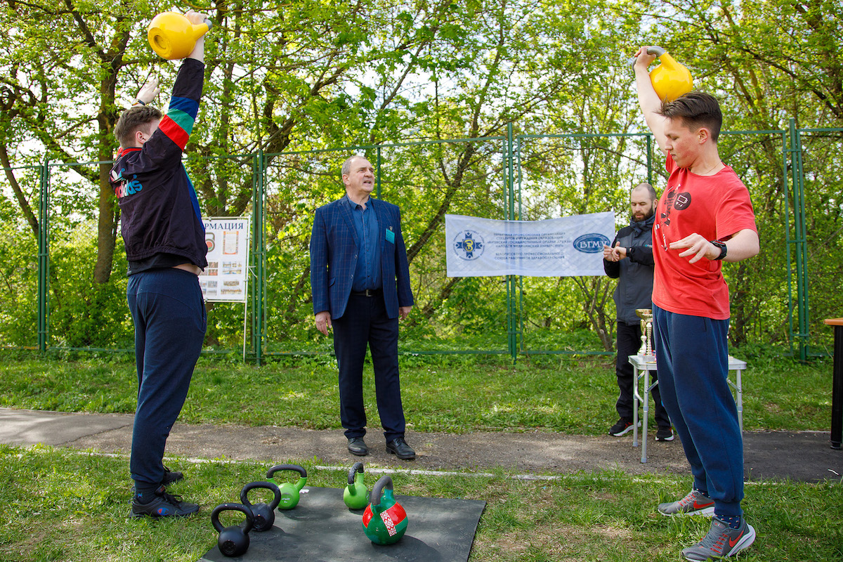 На протяжении всего дня наши студенты смогли поучаствовать в соревнованиях по дартсу и баскетболу, в забегах на 1000 и 500 метров в мастер-классе по гиревому спорту.