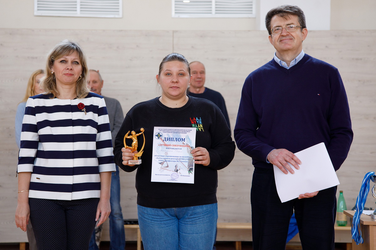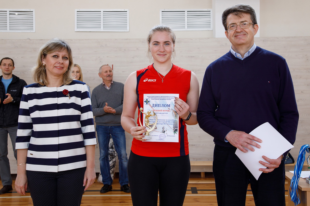 21-22 октября в большом спортивном зале университета проходил турнир по волейболу «Кубок ректора ВГМИ (1979-1996) профессора Сачека М.Г», участниками которого стали 12 команд организаций здравоохранения, в том числе 2 команды ВГМУ. Приветствовали участников соревнований Плыткевич В.Т., председатель Витебской областной организации профсоюзов БПРЗ, Болтрушевич Н.Г., проректор по ВиИР, Сачек С.Н., дочь Михаила Григорьевича Сачека. Ярким и запоминающимся стало выступление команды ВГМУ по черлидингу.