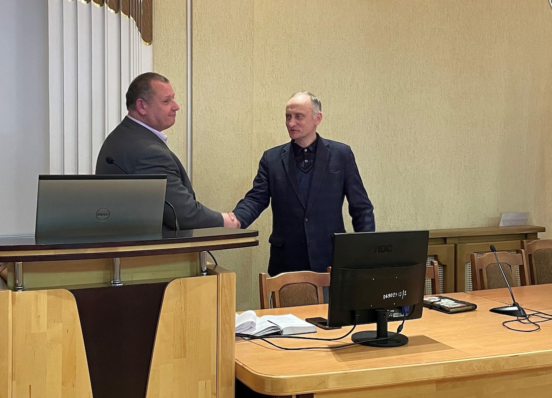 По данному вопросу выступил проректор по безопасности, режиму и кадрам Дорофеев Николай Борисович, который поблагодарил Беспалова Ю.А. за успешно проделанную работу и предложил на должность председателя военно-патриотического Клуба «Служу Отечеству» кандидатуру начальника военной кафедры полковника м/с Лятоса Игоря Александровича.