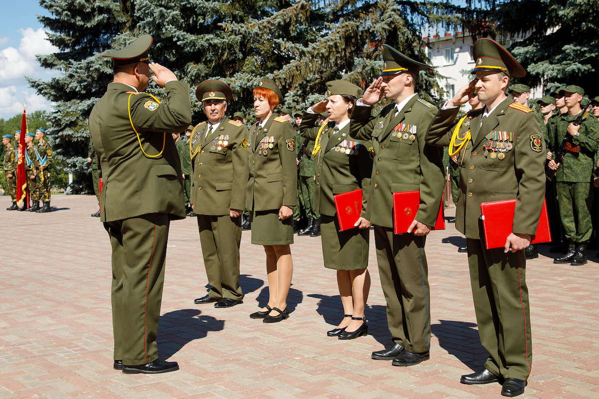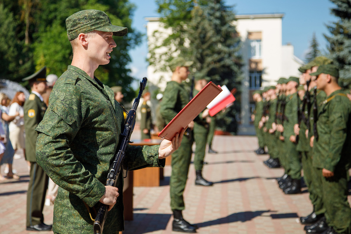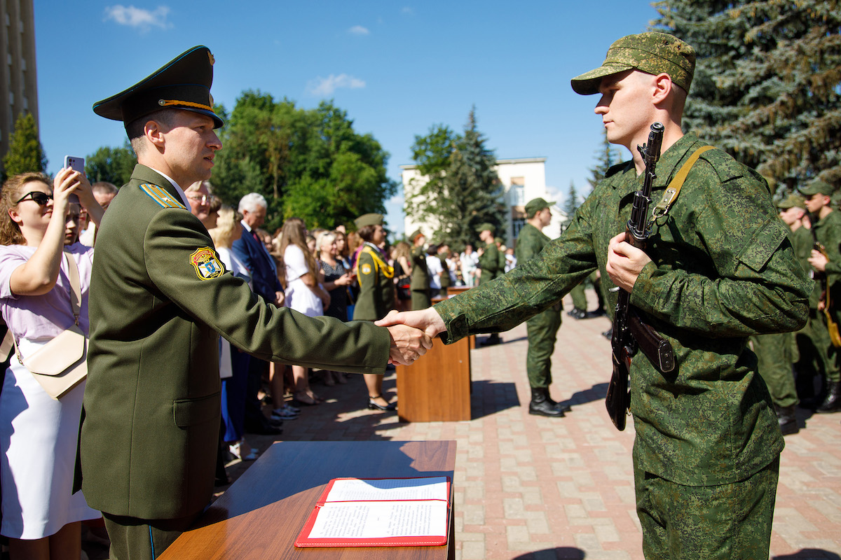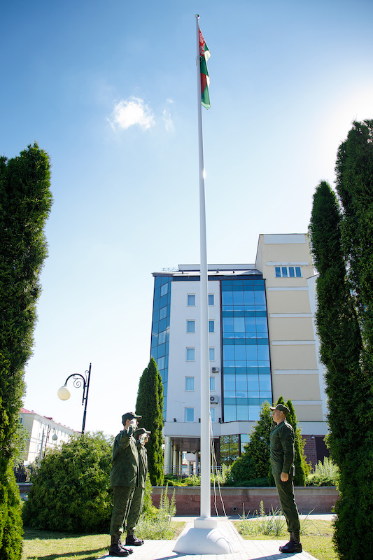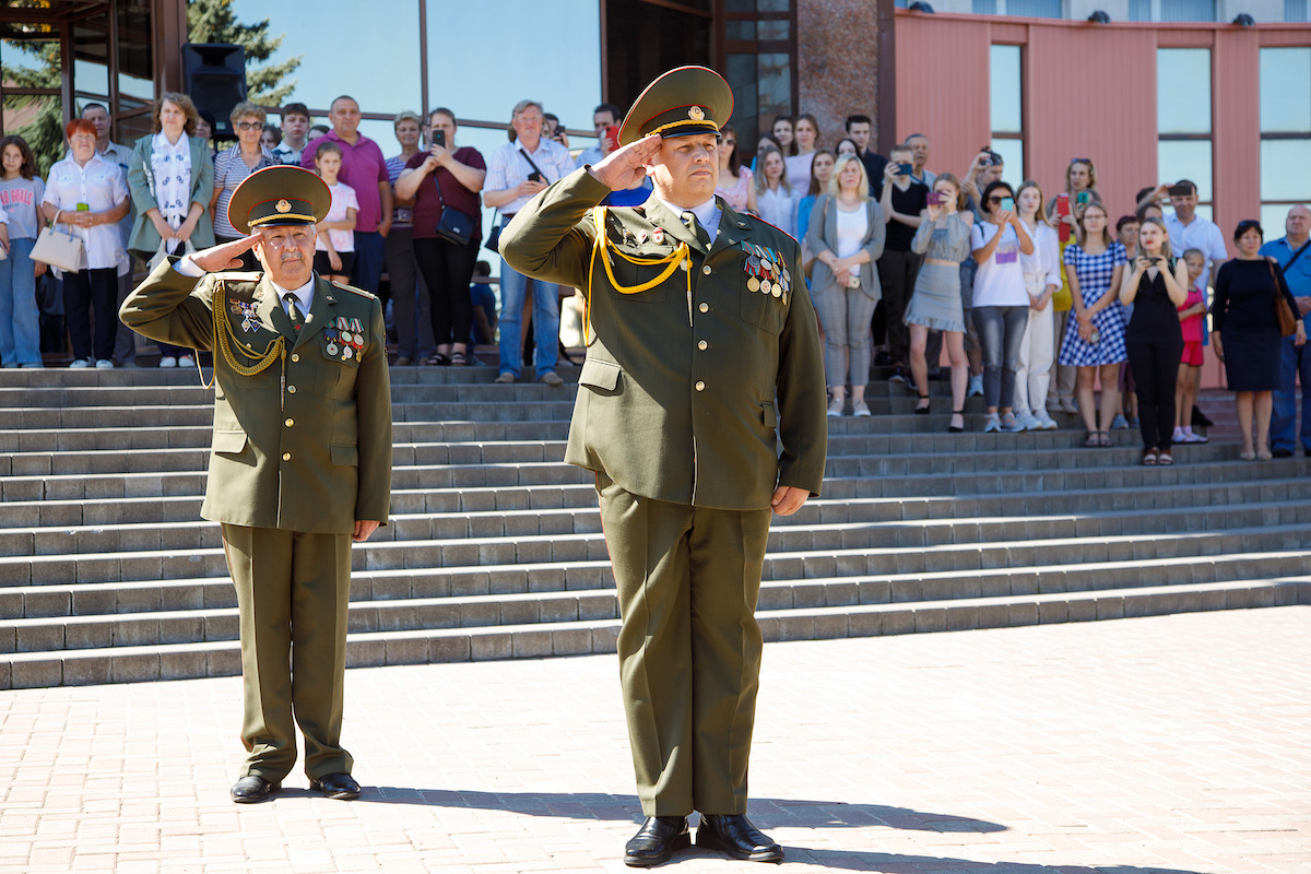 Воинский ритуал начался с поднятия Государственного флага Республики Беларусь и исполнения Государственного гимна. Поднятие флага, было поручено отличникам учёбы – студентам Дмитриевичу Роману, Обловацкому Никите, и Смушко Максиму. Затем к личному составу и гостям мероприятия с напутственным словом обратился начальник военной кафедры, полковник м/с Беспалов Ю.А. и выразил уверенность, что ребята будут с достоинством и честью выполнять свой профессиональный долг и понимают важность принятия военной присяги и свою личную ответственность за судьбу страны.