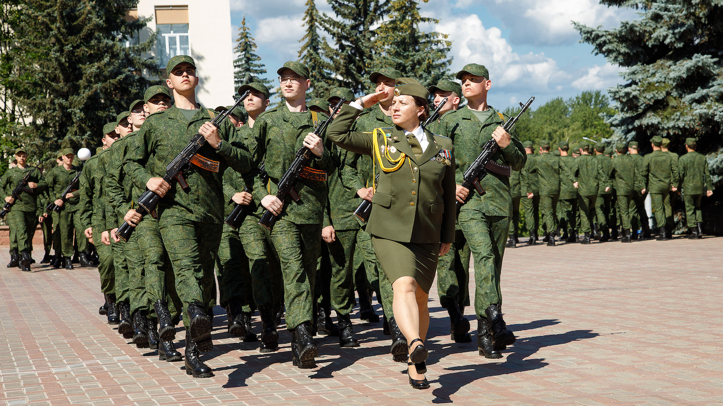 Торжественным маршем мимо руководства университета и гостей, чеканя шаг, прошли взводы студентов.