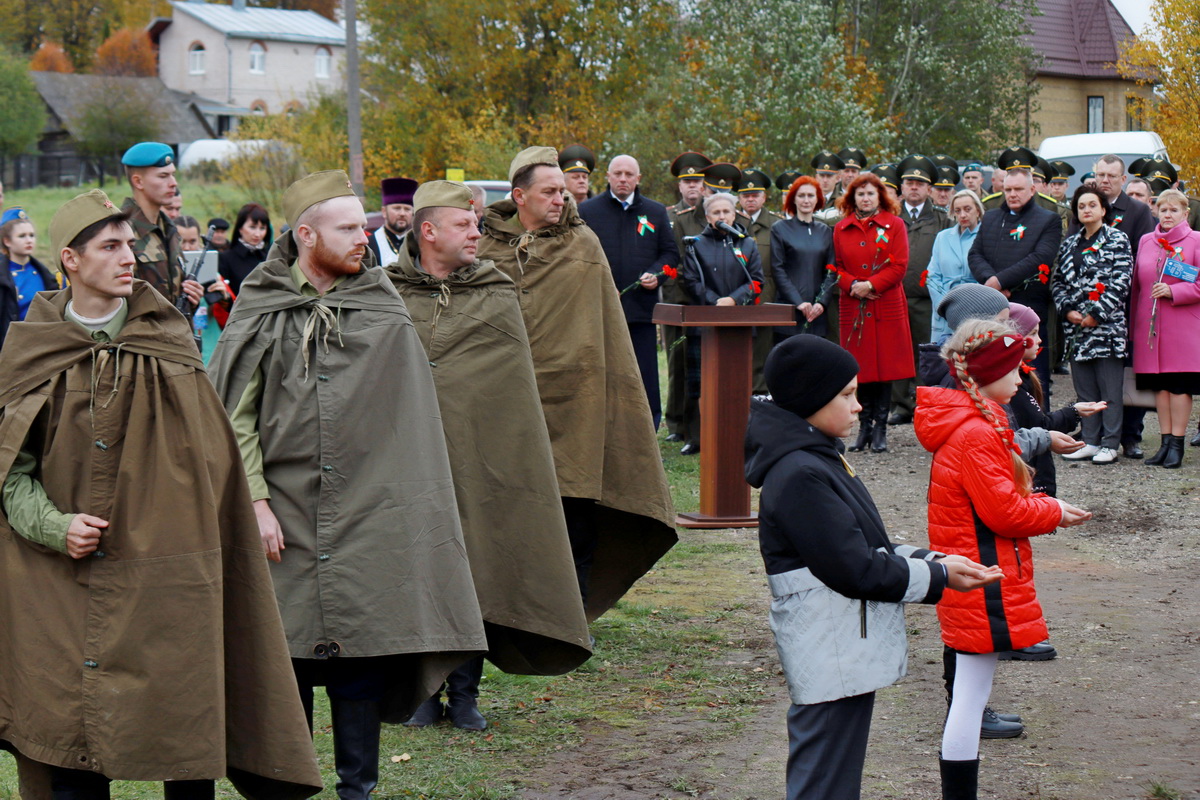 Вступительную речь произнесли высокие гости мероприятия: председатель Витебского областного Совета депутатов В.В. Терентьев; председатель Лиозненского райисполкома И.И. Фёдоров; начальник Управления по увековечению памяти защитников Отечества и жертв войн при МО РБ С.Н. Воронович.
