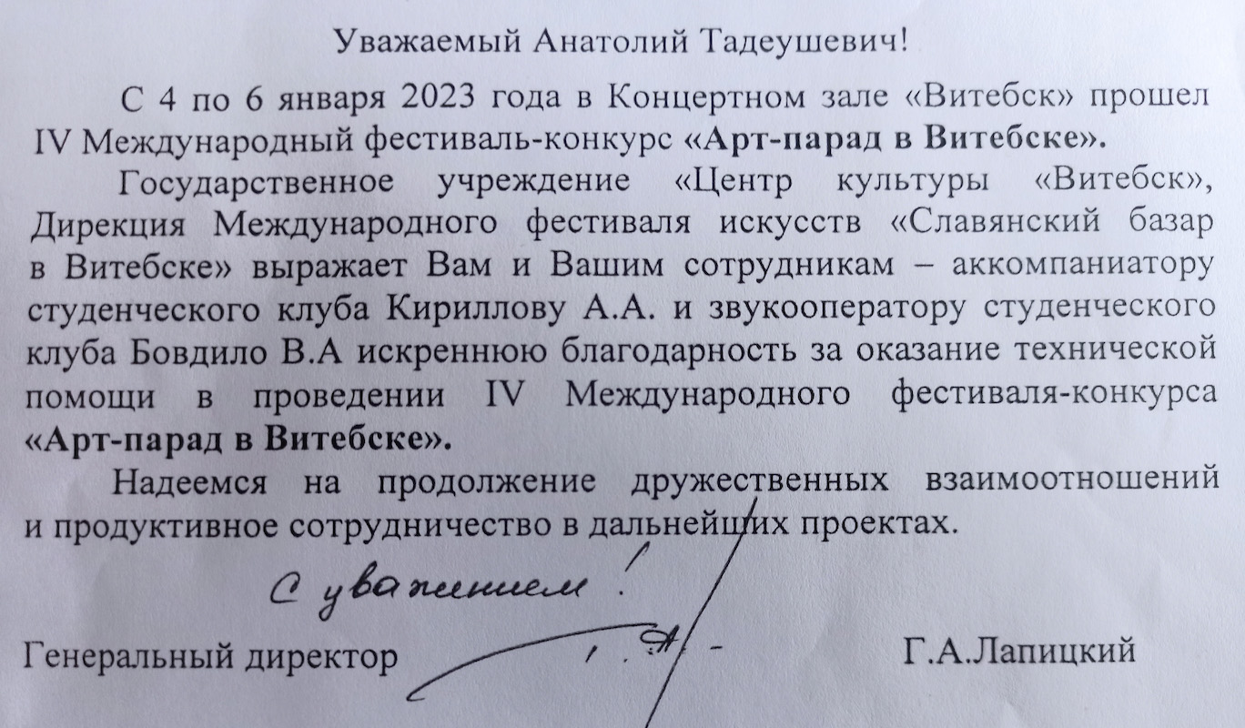 Благодарность от учреждения образования «Гомельский государственный медицинский колледж» благодарность