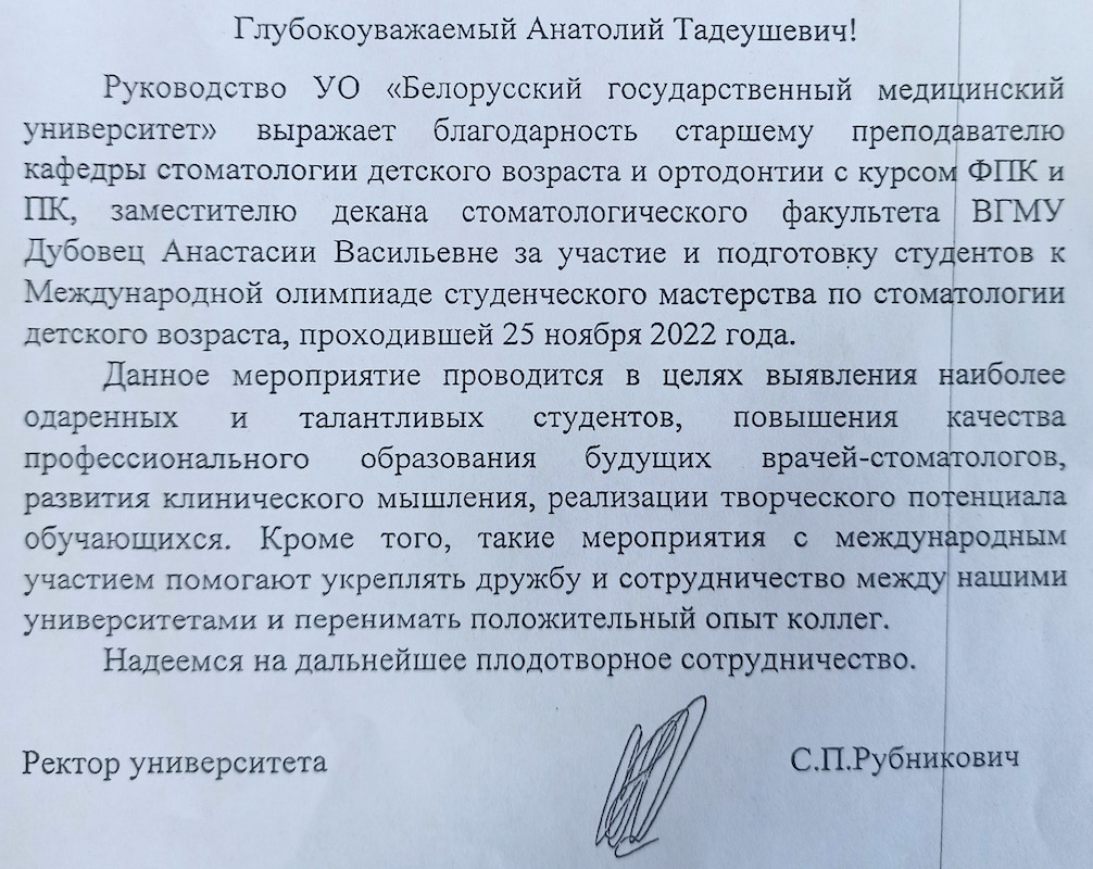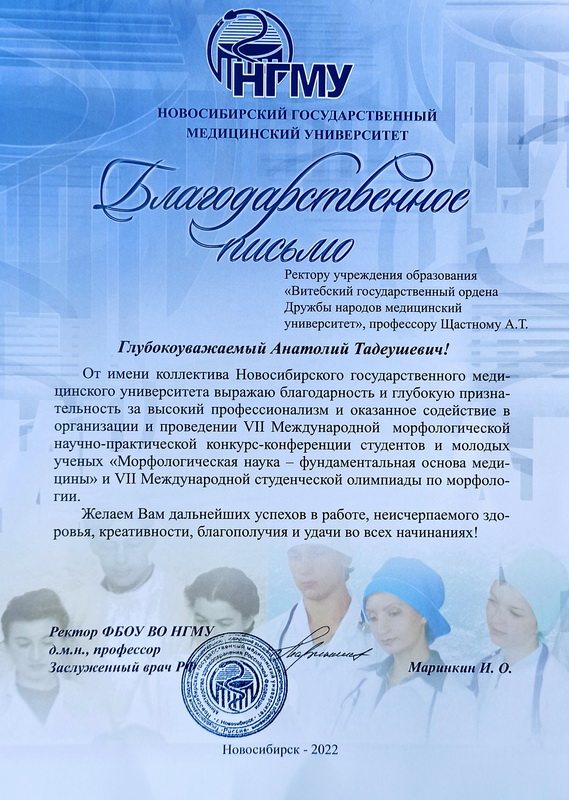 Благодарность профессору Усовичу Александру Константиновичу от имени коллектива Новосибирского государственного медицинского университета