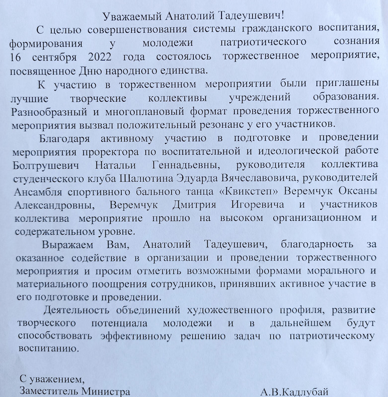 Глубокоуважаемый Анатолий Тадеушевич!