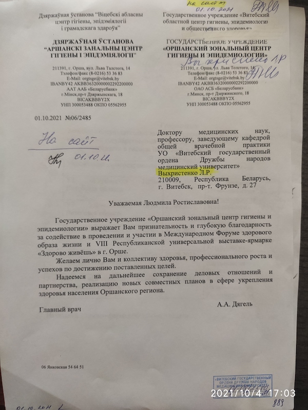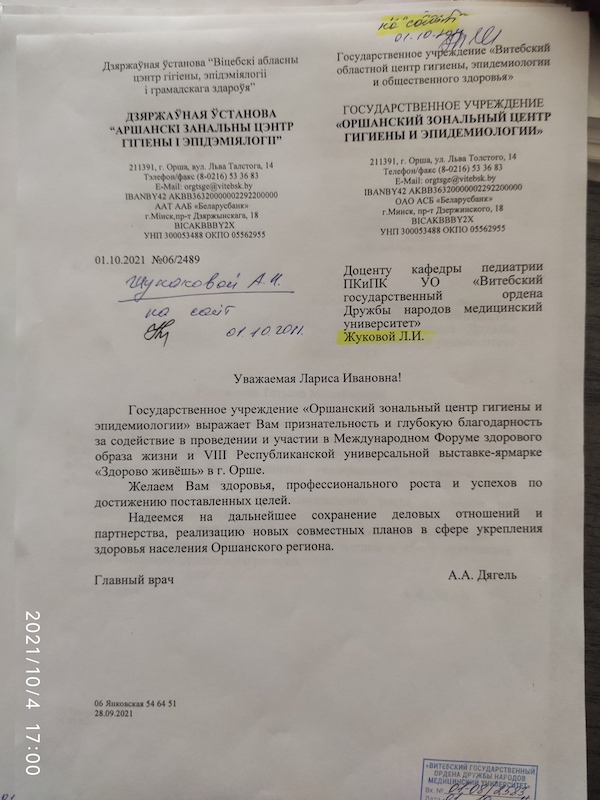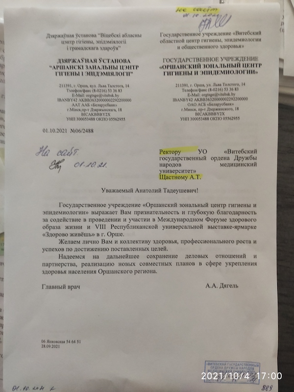 УО "Витебский государственный ордена Дружбы народов медицинский университет", 210009, г. Витебск, пр-т Фрунзе, 27