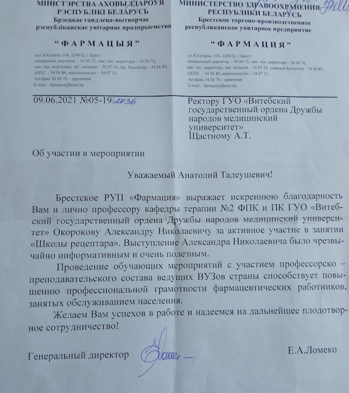 Выражаем надежду на дальнейшее конструктивное сотрудничество в рамках научно- образовательных мероприятий, организуемых ФГБОУ ВО «Смоленский государственный медицинский университет» Минздрава России.