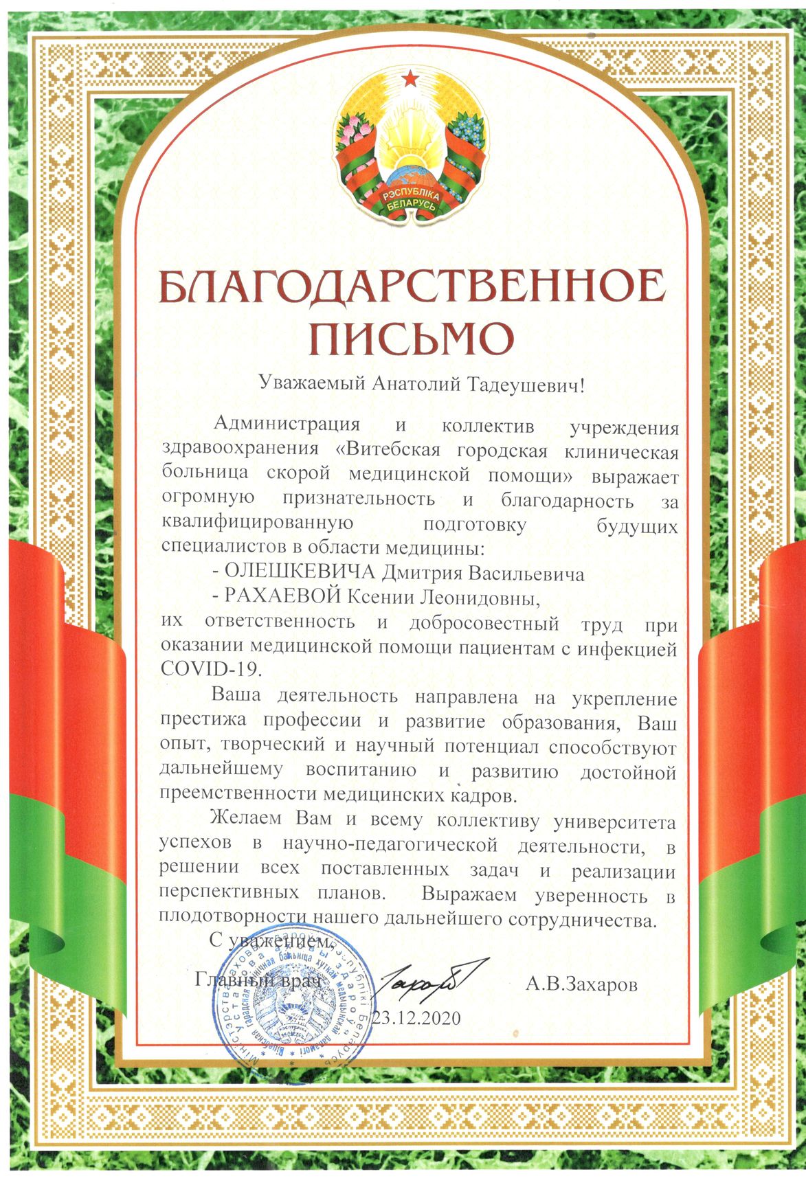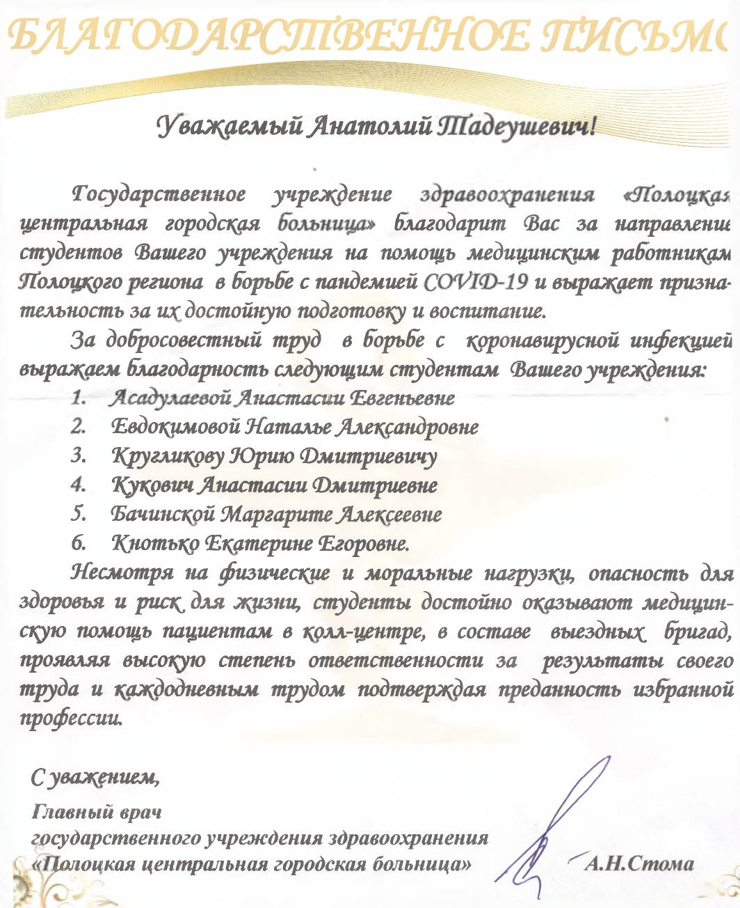 Уважаемый Анатолий Тадеушевич!