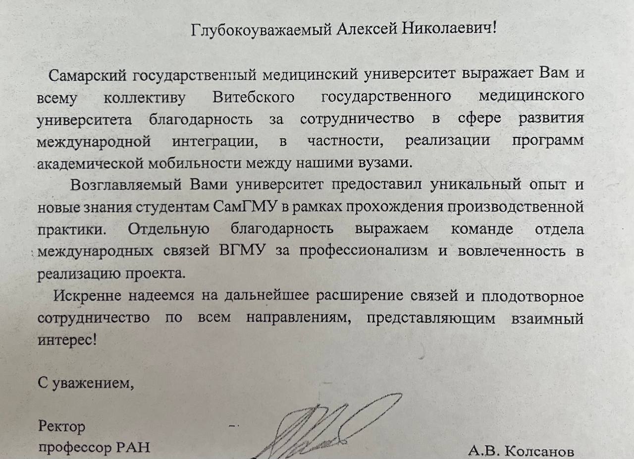 • Благодарность от Самарского государственного медицинского университета (29.09.2023)