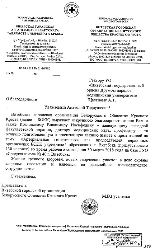УО "Витебский государственный ордена Дружбы народов медицинский университет", 210009, г. Витебск, пр-т Фрунзе, 27