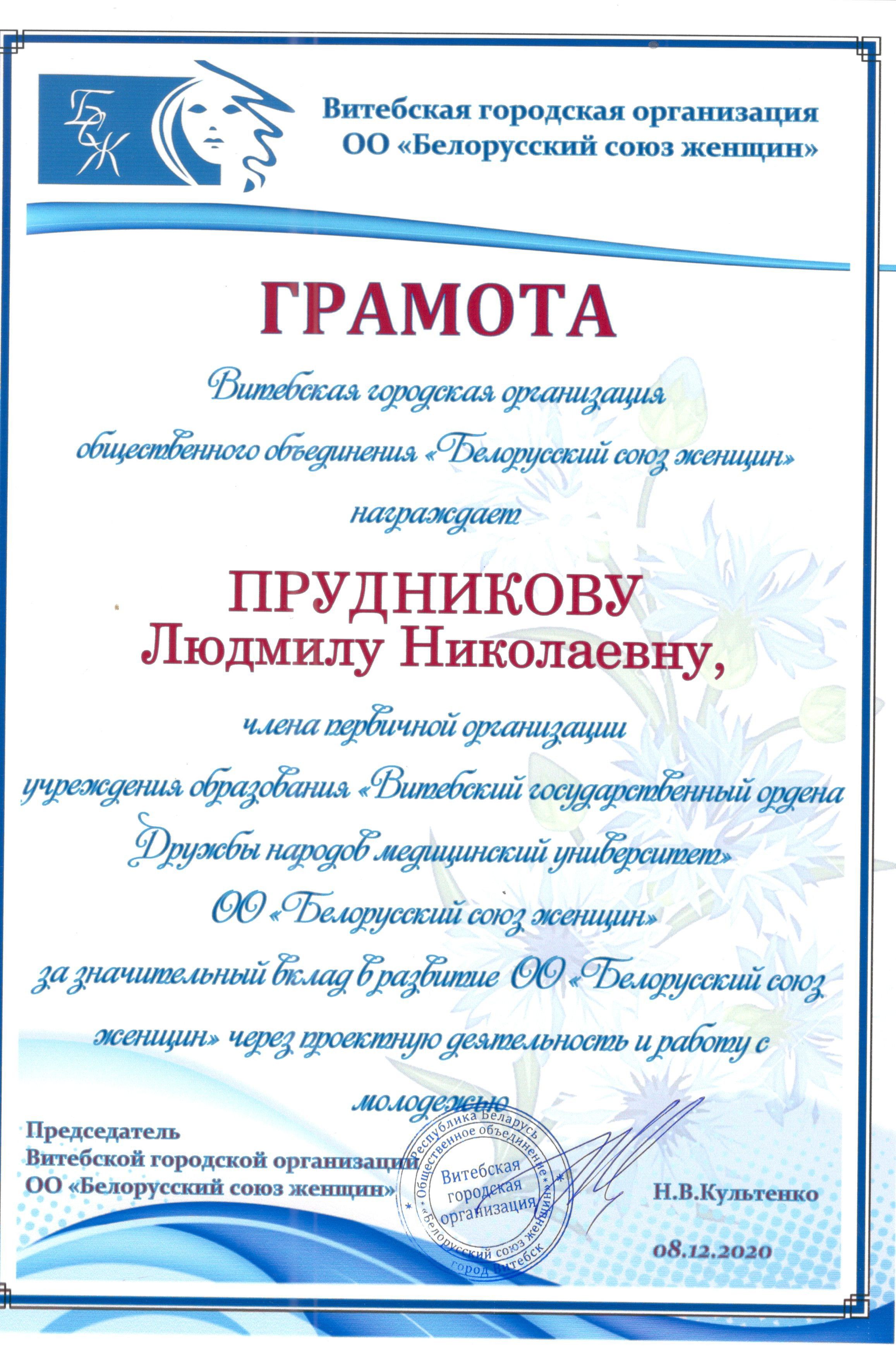 • Благодарность Председателя Палаты представителей Национального собрания РБ