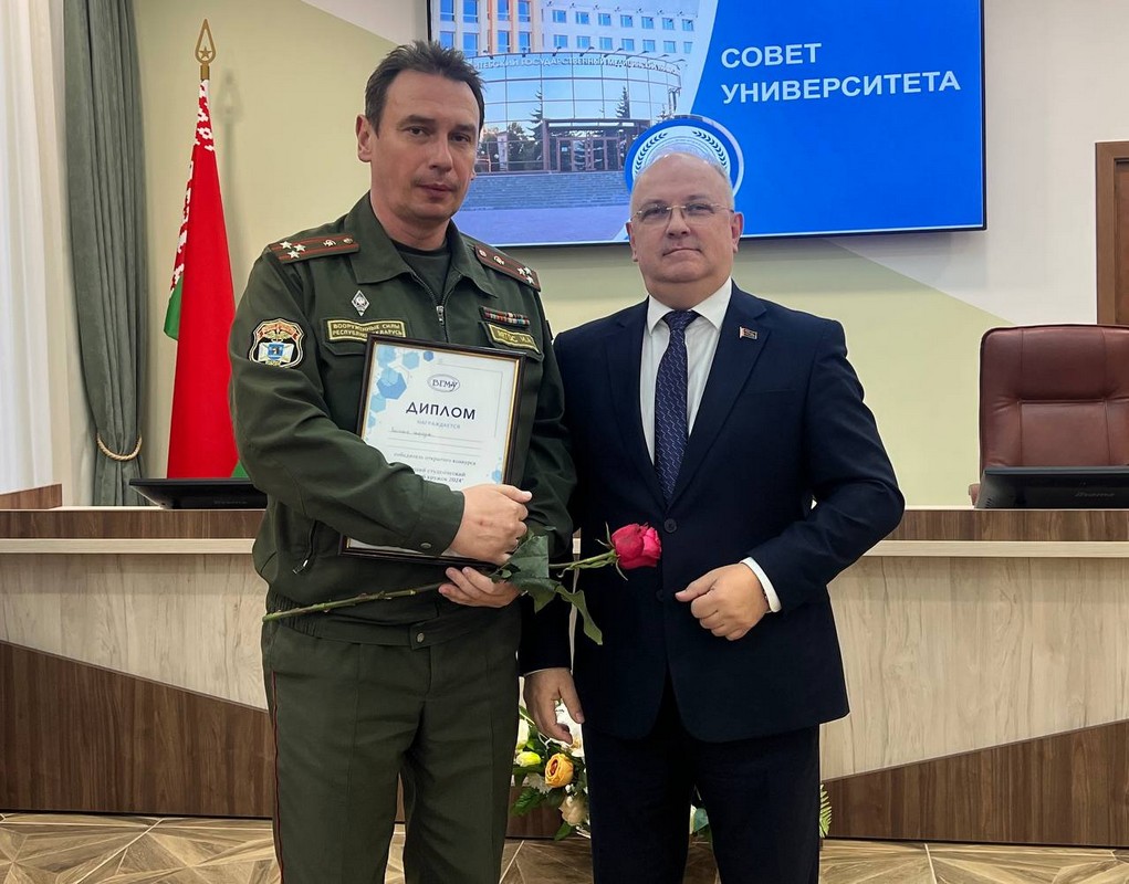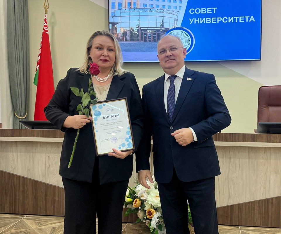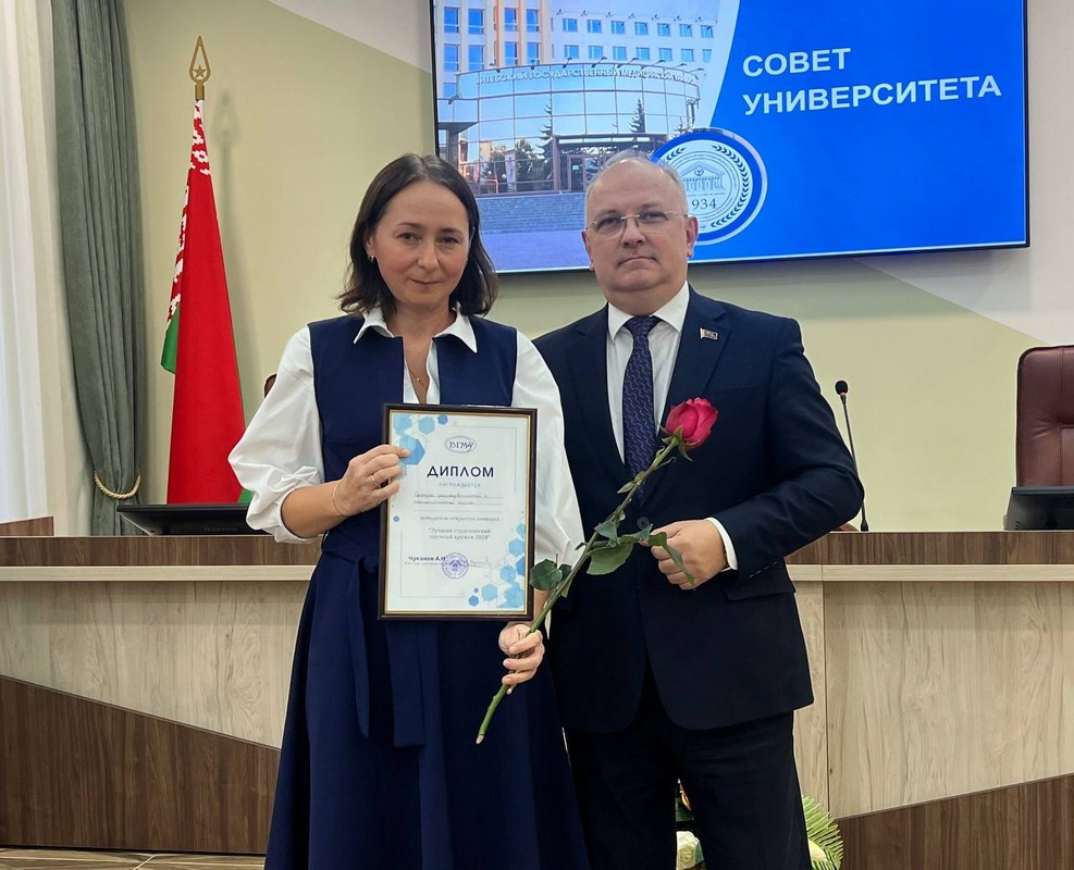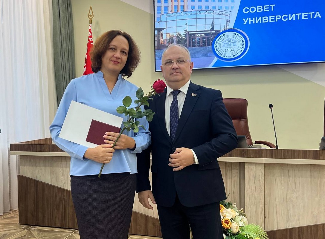 The Chairman of the University Council, Aleksey Chukanov, presented the following: a certificate of associate professor to Irina Ogrizko; commemorative badges "Veteran of Labor of VSMU" to Elena Poplavets, Svetlana Lazuko, Alexandra Baranovskaya, Sergey Pimanov, Gennady Grenkov, Margarita Orlova. The following students received diplomas of the winners of the competition for the best student research group: the Student Research Group of the Department of Pharmaceutical and Toxicological Chemistry; the Student Research Group of the Department of Maxillofacial Surgery and Surgical Dentistry with the course of FAT and PR; the Student Research Group of the Department of Clinical Immunology and Allergology; the Student Research Group of the Military Department; the Student Research Group of the Department of Pathological Physiology.