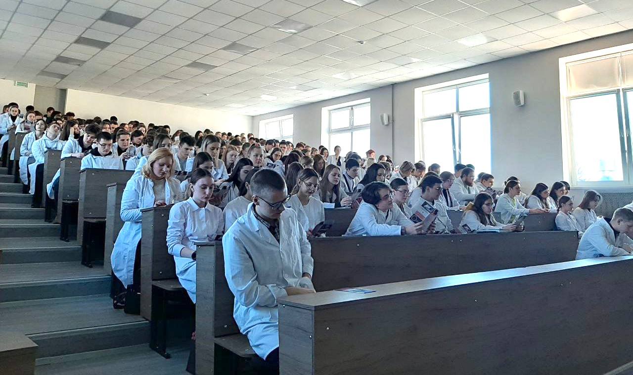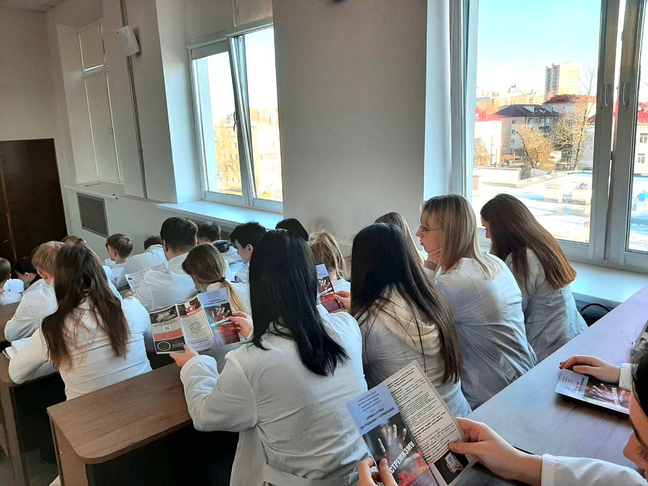 On December 18, 2024, a meeting was held between the Vice-Rector for Security, Regime and Personnel N.B. Dorofeev, the Vice-Rector for Ideological and Educational Work D.K. Kuzhel, the Dean of the medical faculty M.P. Fomina, the Deputy Deans Ya.O. Perevalov and O.A. Fedchuk, the Chairman of the primary trade union organization of students of VSMU N.S. Paramonov with the 1st-year students of the medical faculty on the prevention of extremism and terrorism.