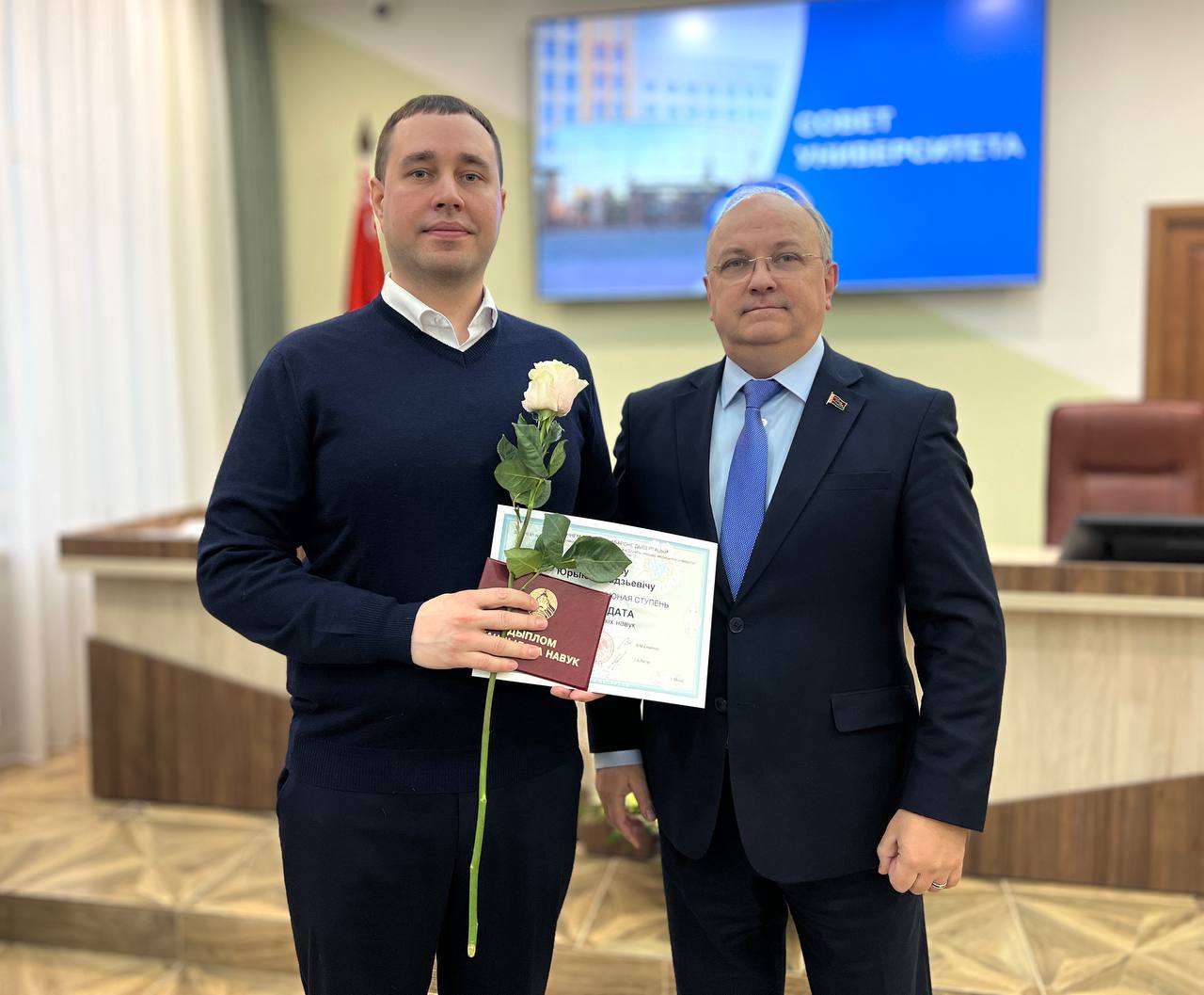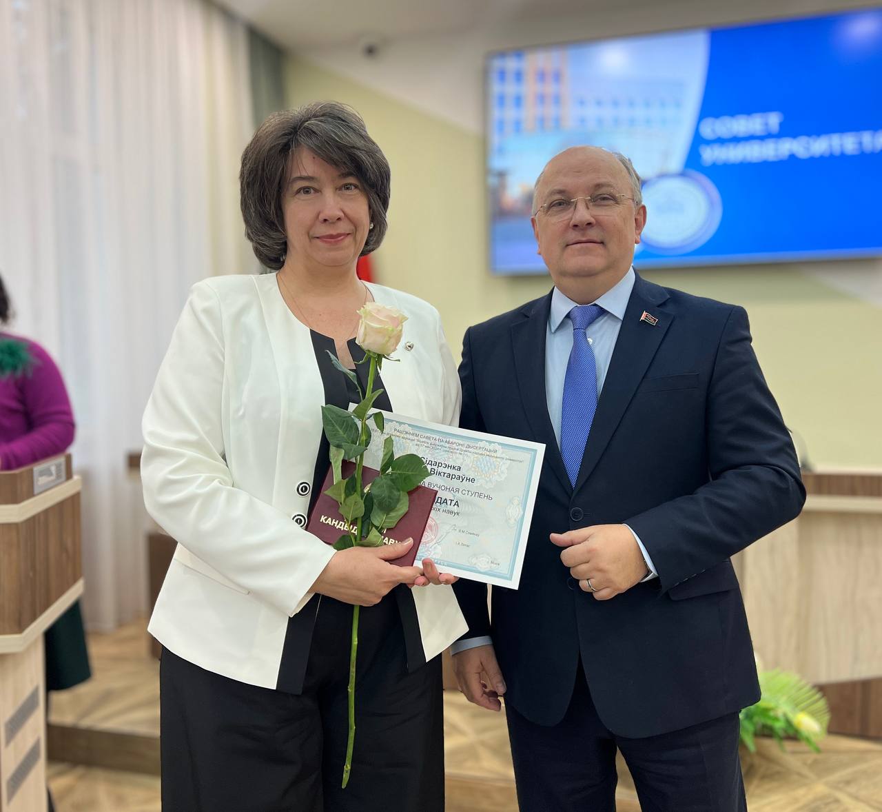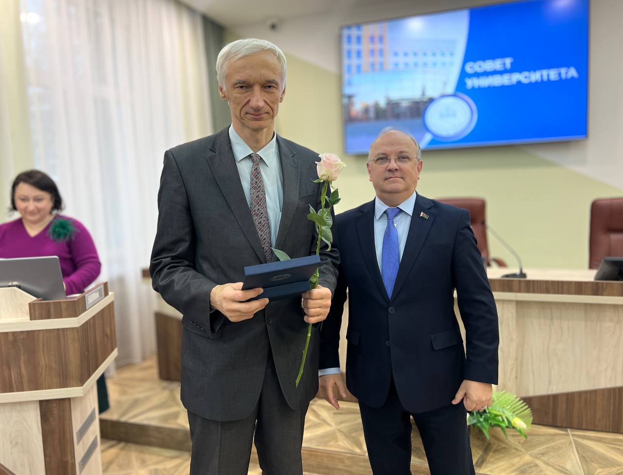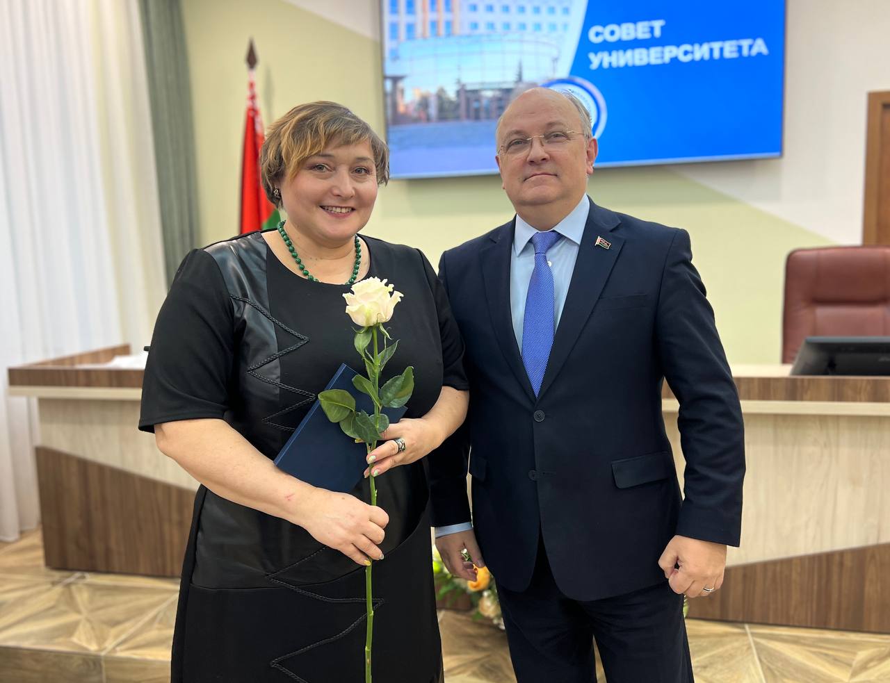 Chairman of the Council Alexey Chukanov handed the diplomas of candidate of sciences to Elena Sidorenko and Yury Yupatov, the sign “Veteran of Labor of VSMU” to Vladimir Shvarenk, Irina Grishina, Elena Krylova, Igor Generalov, Alexander Myasoedov.