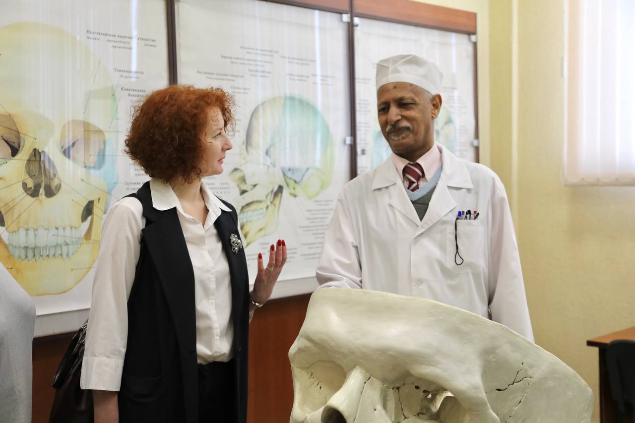 The Head of the Department of International and Interregional Relations of VSMU Elena Sharykhina and the chairman of the trade union committee of the employees Alexander Myasoedov gave the guests a tour around the university. The guests got acquainted with the system of medical training, modern material and technical base, and also visited the Clinic of VSMU, where the head physician Natalia Alekhna told about the work of specialized departments and provided medical services.