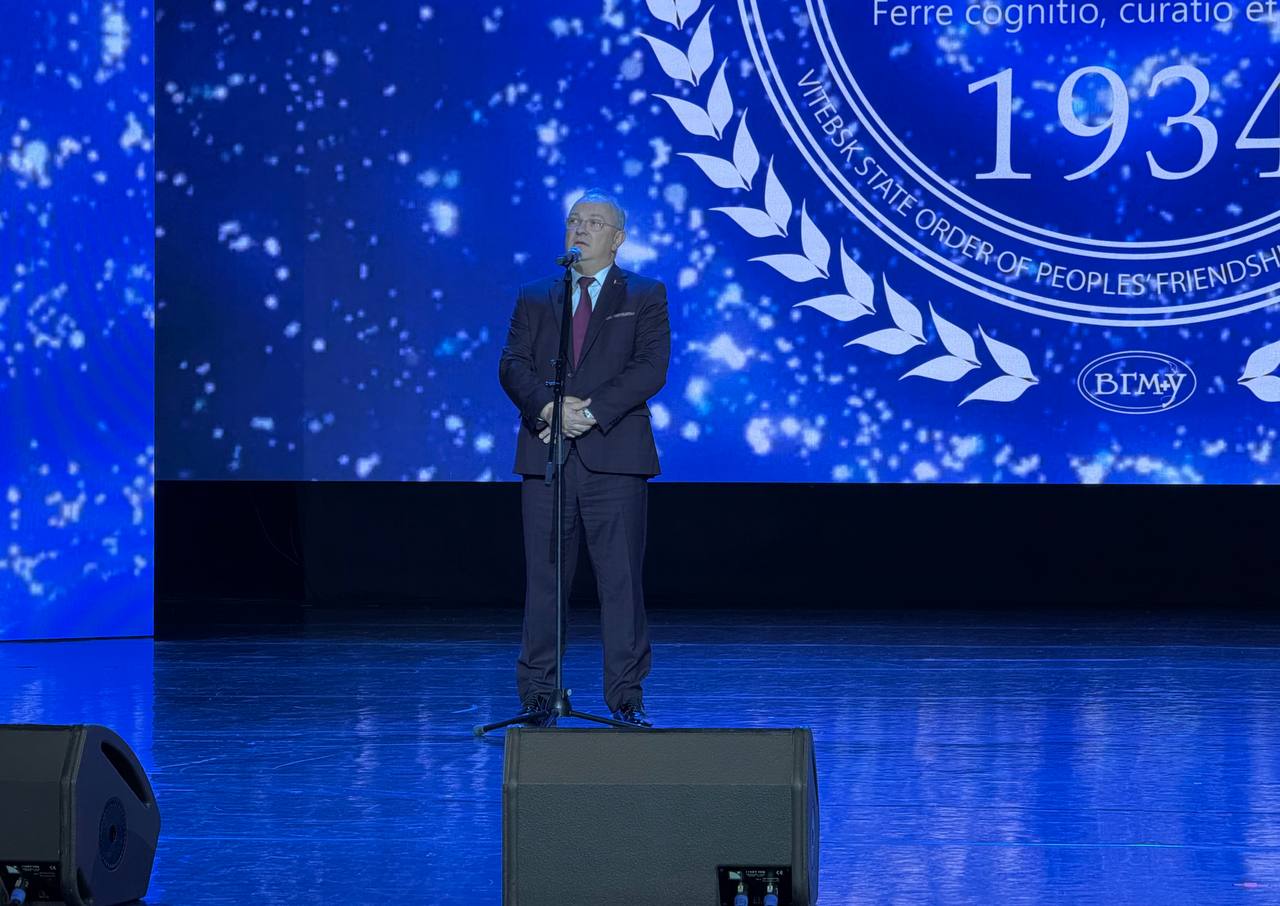 Alexey Chukanov, Rector of VSMU, took the stage to congratulate the university family on its birthday. In his speech, he emphasized that this celebration is a vivid testament to the unity, talent, and strength of the university community. He wished everyone good health, inexhaustible energy, and continued professional success.