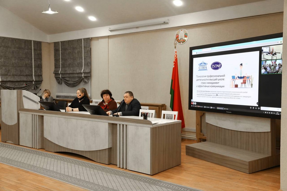 The session was moderated and conducted by Victoria Mikhlyuk, head of the social, pedagogical, and psychological service from our university. The lecture covered issues related to developing teachers' psychological competence in stress management and fostering productive professional relationships within an academic environment.