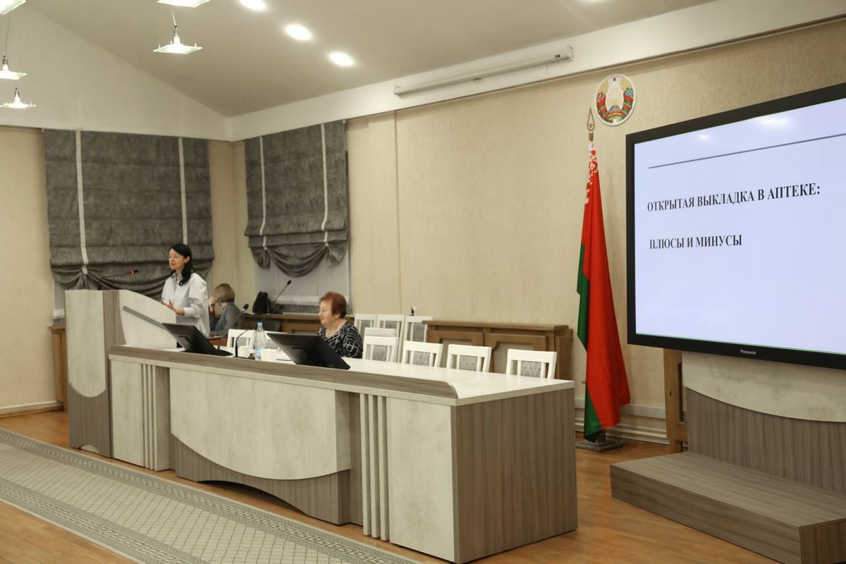 The session featured presentations on topics including the characteristics of the pharmaceutical market in the Republic of Belarus, regulation of biologically active food additives in the Russian Federation, marketing analysis of flexible management factors within the pharmaceutical organization ecosystem, and behavioral patterns of geriatric patients in pharmacies.