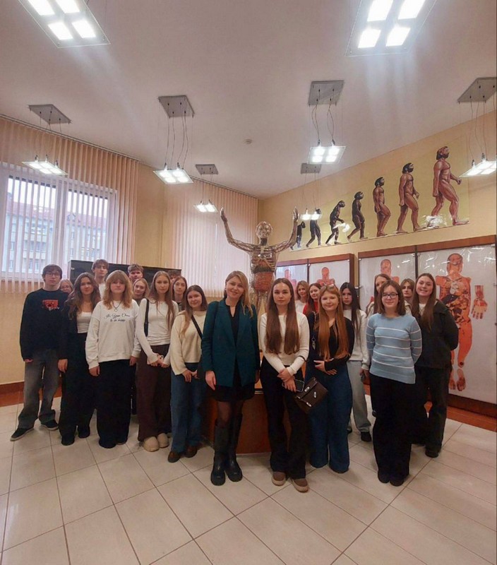 Lyubov Orekhova, Deputy Dean of the faculty of Preparatory Training Course, also led a tour of the anatomical museum. Students had the opportunity not only to view a unique collection of specimens but also to gain a visual understanding of the human body's structure.