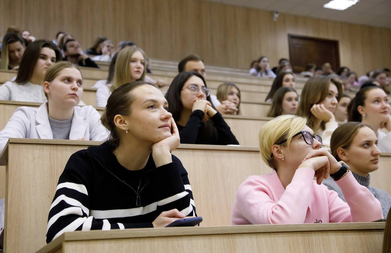 On November 26, 2025, our university hosted a meeting between senior students of the General Medicine Faculty and representatives of the Vitebsk regional headquarters of “the Iskra” Youth Movement of the Belarusian “Belaya Rus” Party. The guests included Nikita Skaskevich, a student of the Pediatrics Faculty and representative of the organization, as well as Egor Kostyukovich, chairman of the youth wing of the Primary Organization of the “Belaya Rus” Republican Public Association, also a student of the Pediatrics Faculty.