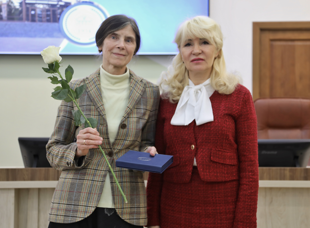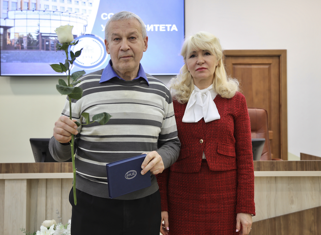 The badge "Veteran of Labor of VSMU" was awarded to the following for their high-quality performance of official duties, transfer of experience and skills to younger employees, active citizenship, and participation in the social life of the team: Alexander Buinov, Natalia Protsenko, Ekaterina Mashero, Zhanna Safonova, Sergey Shabanov, Oksana Gapova, Evgeny Zhuklevich, Svetlana Ivanova, Grigory Makeenko, Alexander Tsurganov, Nadezhda Sinkova, Boris Khotin.