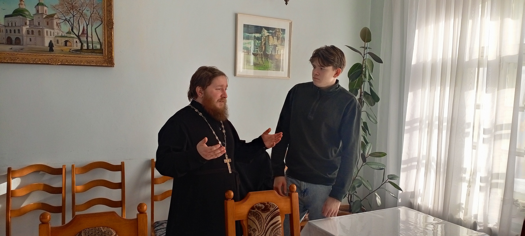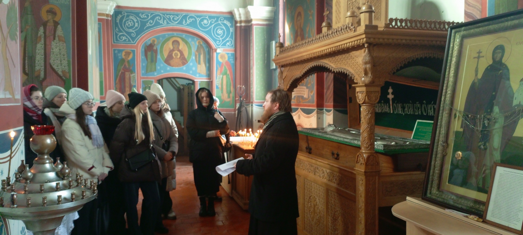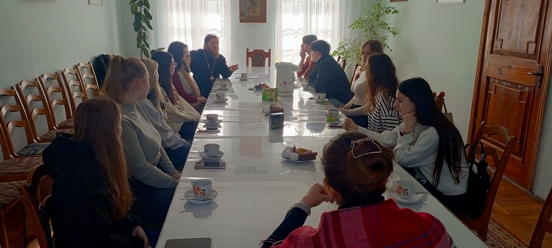 After the tour, a tea party and discussion were held, during which students learned more about the history of the Feast of the Presentation of the Lord. Priest Boris Slutsky answered their questions on topics such as the Bible, morality, love, patience, fidelity, and respect for parents.